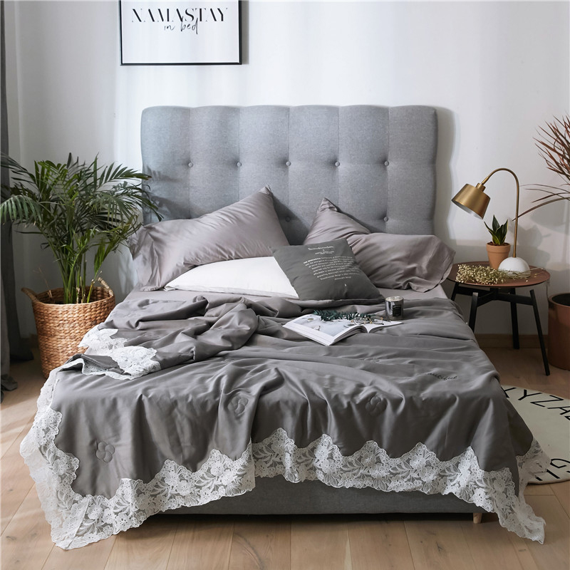 优然居家纺 2018长绒棉蕾丝花边公主风格夏被 深邃灰