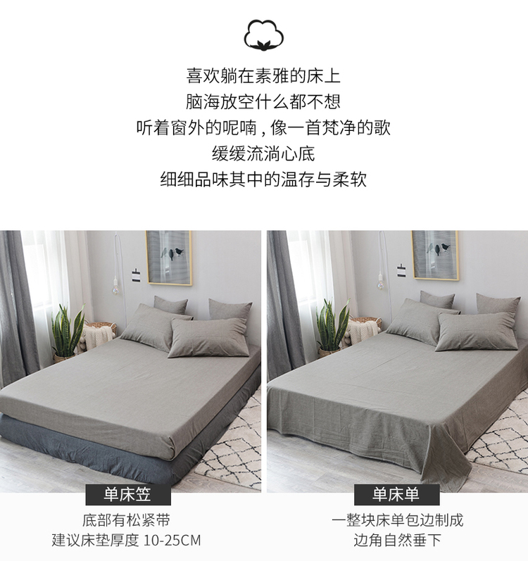 商品名称:柠萌家居 全棉色织水洗棉无影良品风单床单床笠纯色系列