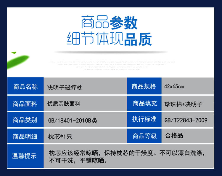 商品名称:兴丝露 学生专用枕决明子磁疗枕42x65