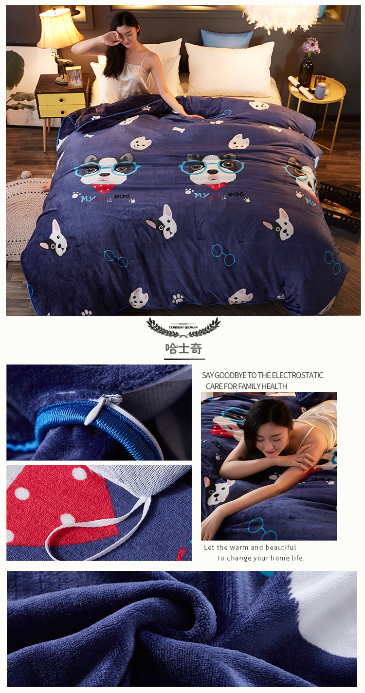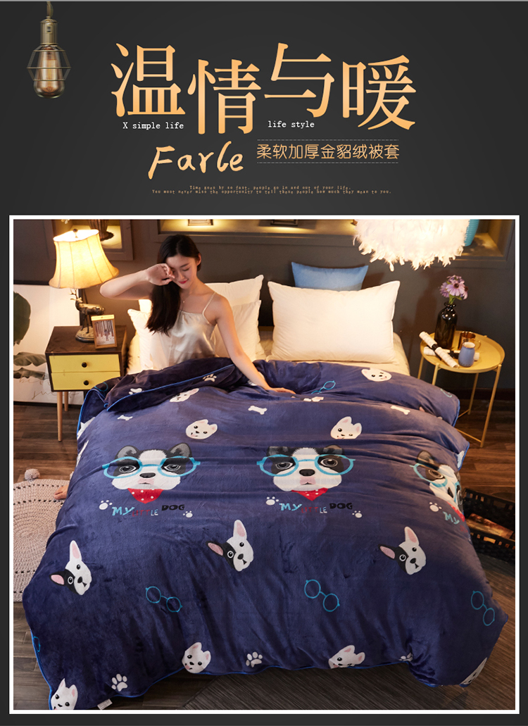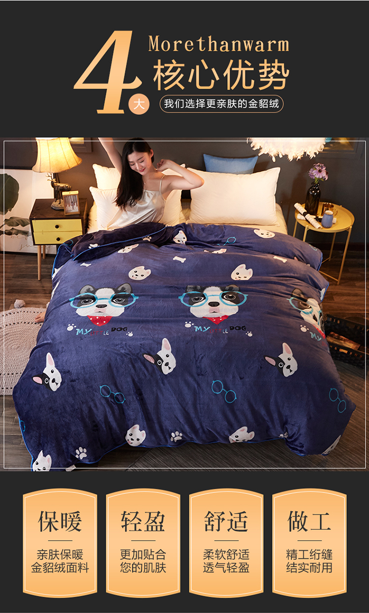 雨洋家纺 2018新款加厚保暖金貂绒单品被套哈士奇
