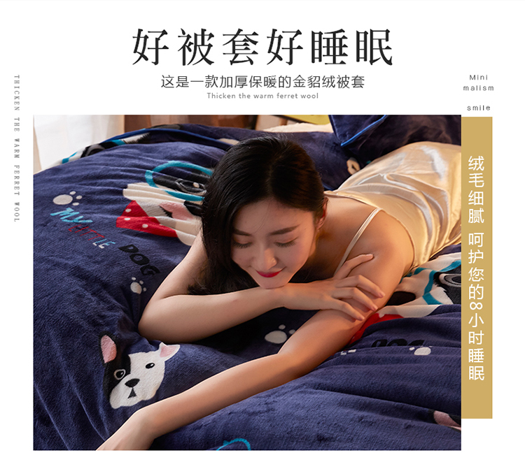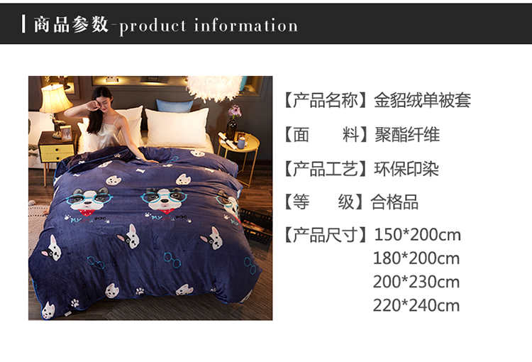 商品名称:雨洋家纺 2018新款加厚保暖金貂绒单品被套哈士奇
