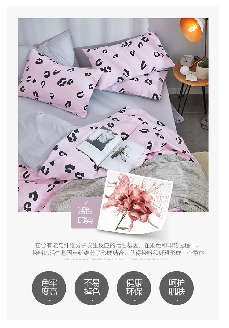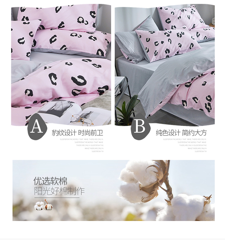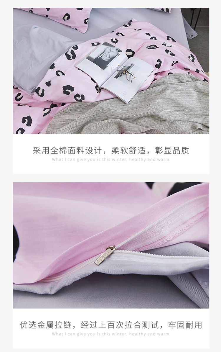 卧趣家纺 2019全棉简约喷气套件 豹纹-粉