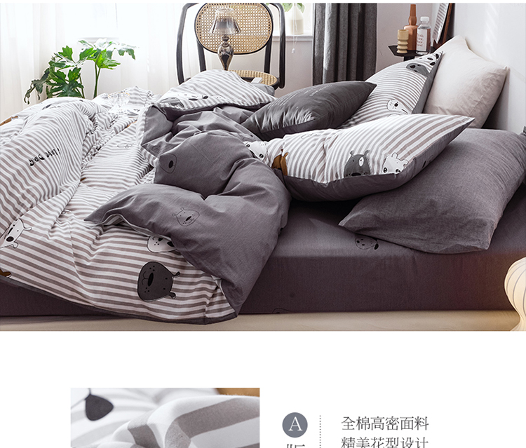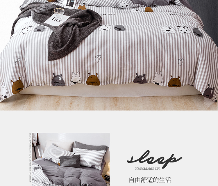 沐棉 2019新款13370小卡通小清新四件套床单款 呆萌狗