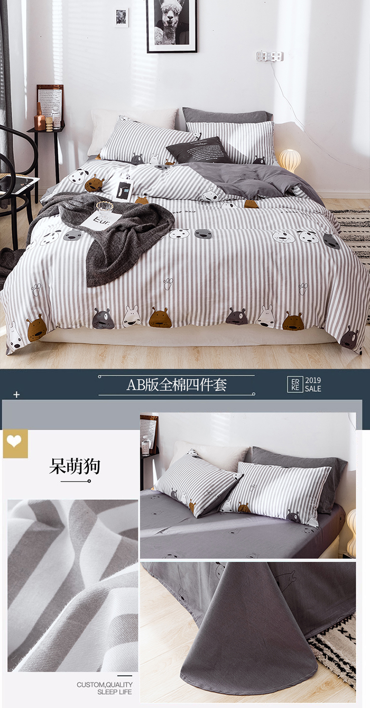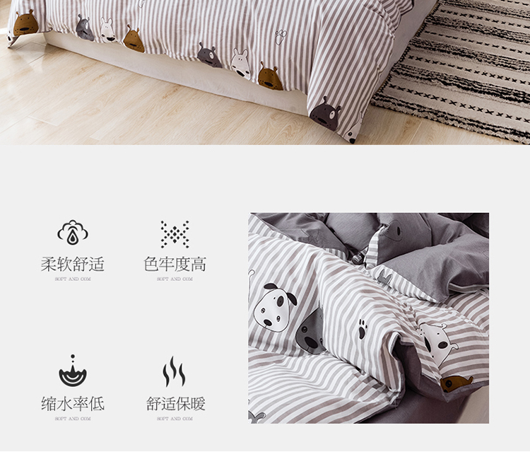 商品名称:沐棉 2019新款13370小卡通小清新四件套床单款 呆萌狗