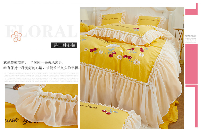 (总)亲亲公主 2025全棉蕾丝花边床裙公主风四件套,甜心花园-玉色,甜心花园-绿色,甜心花园-黄色,甜心花园-浅紫色,甜心花园-蓝色,甜心花园-粉色