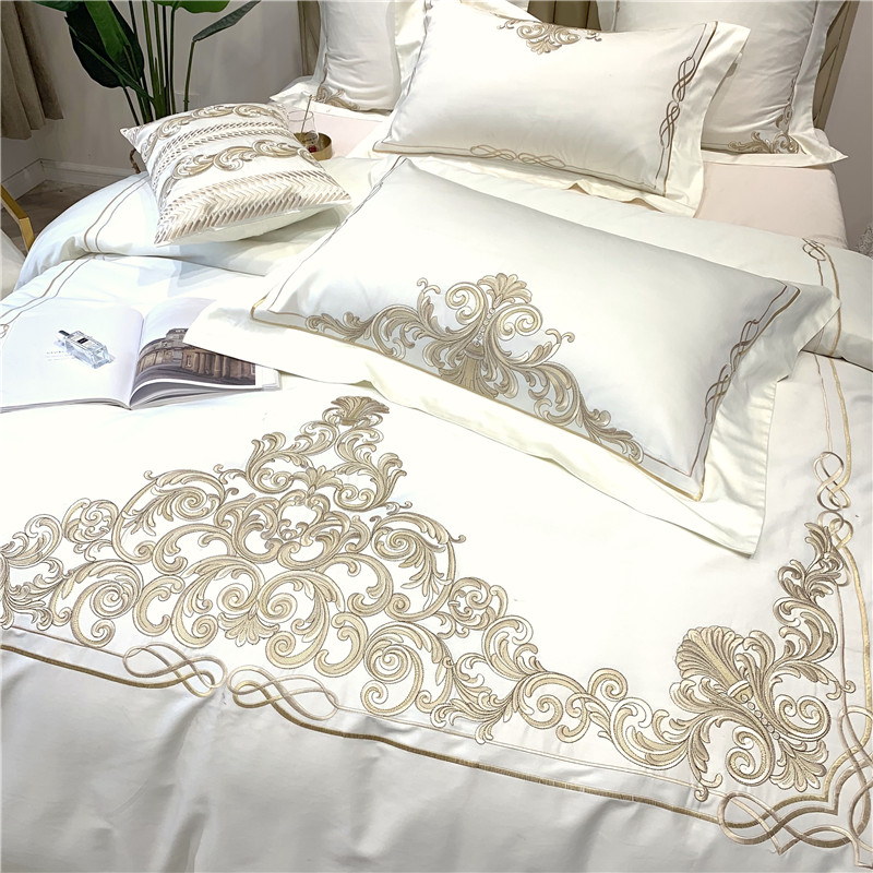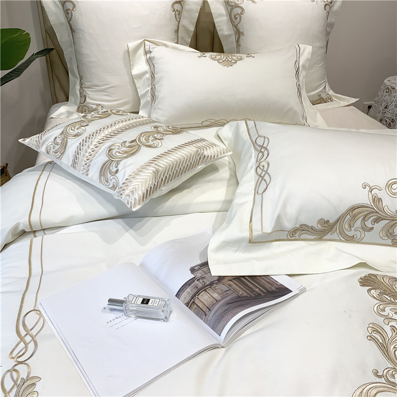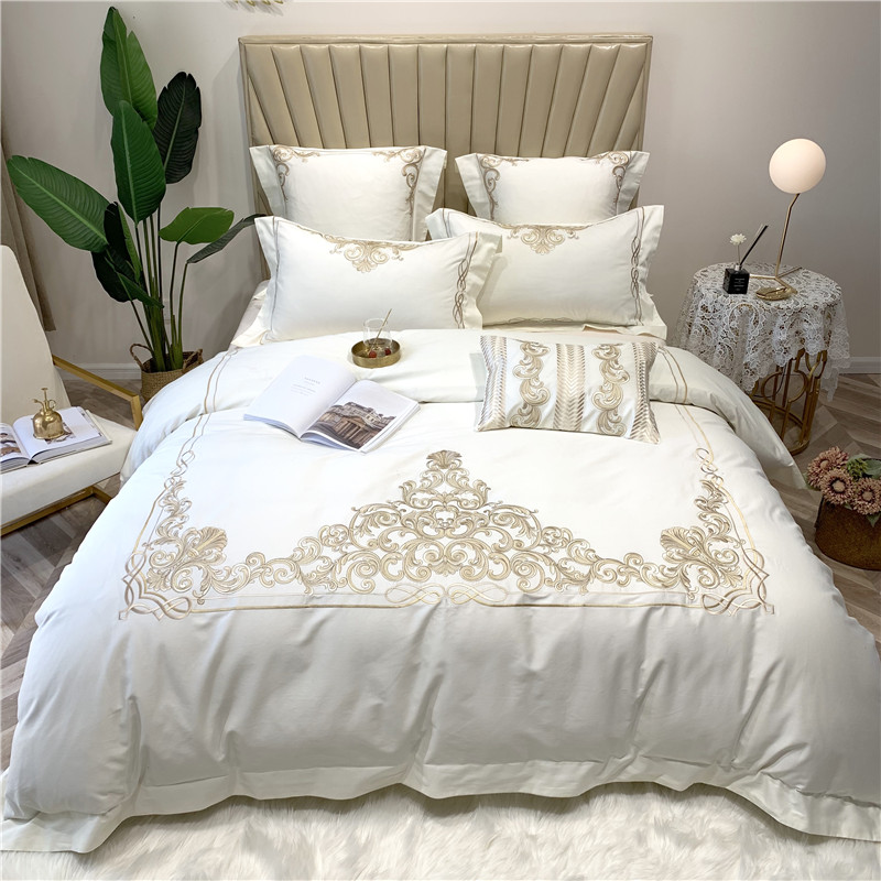 商品名称:馨蕊家居 2021秋冬长绒棉绣花四件套 卢浮时尚-贵族白