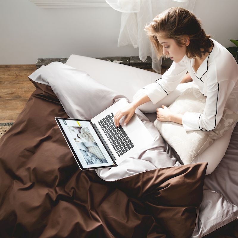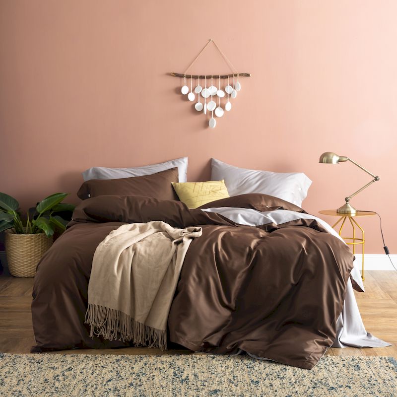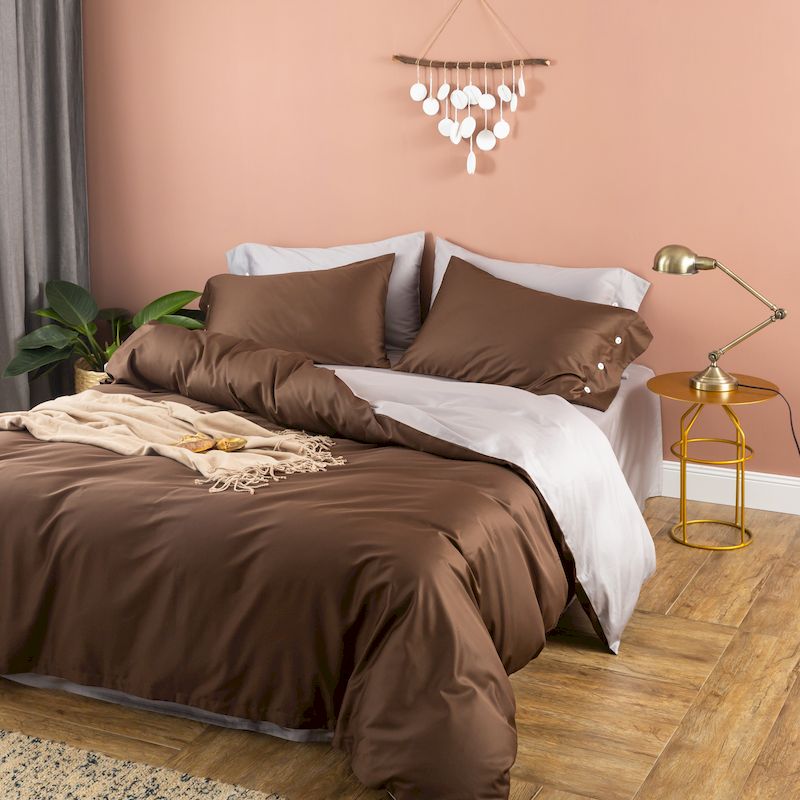 商品名称:涞澳家纺 2019新款60长绒棉平色二简易四件套帝灰配咖啡棕