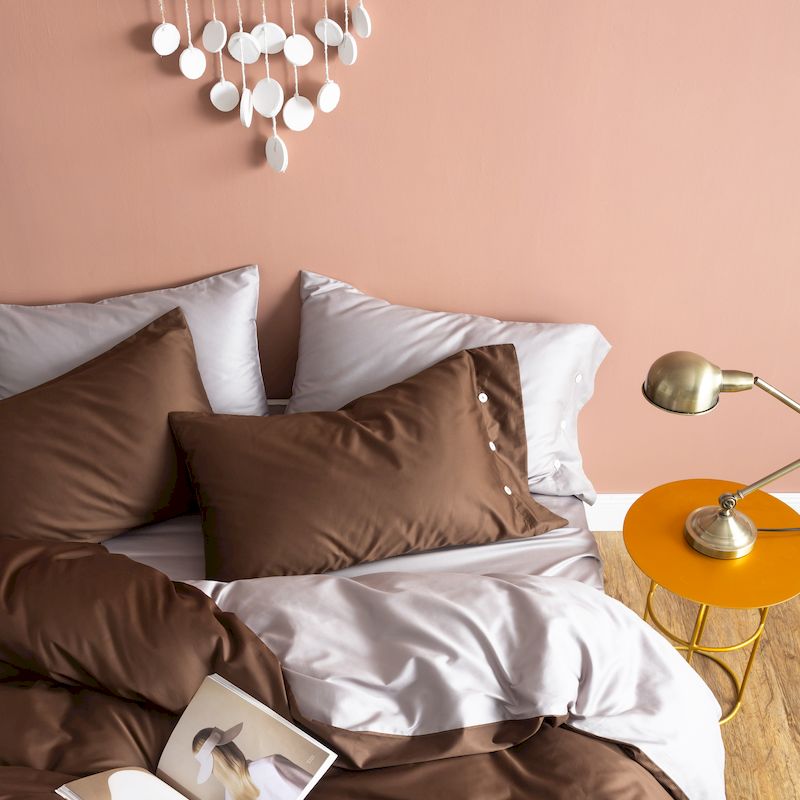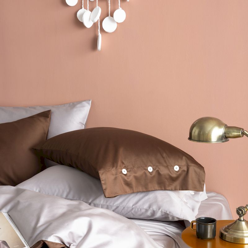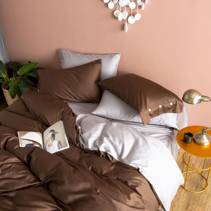 涞澳家纺 2019新款60长绒棉平色二简易四件套帝灰配咖啡棕