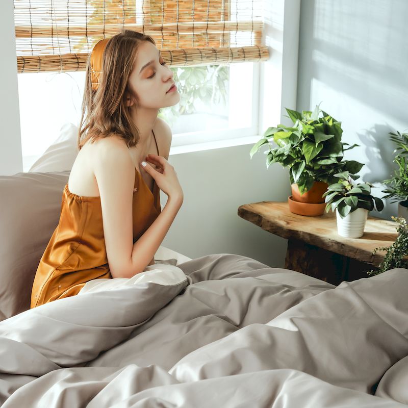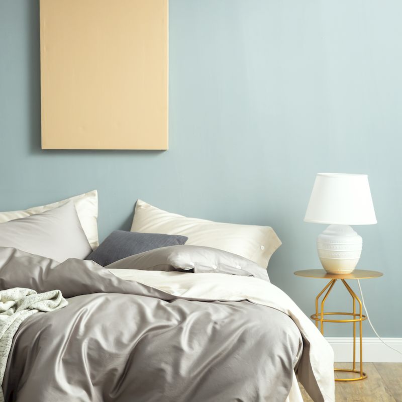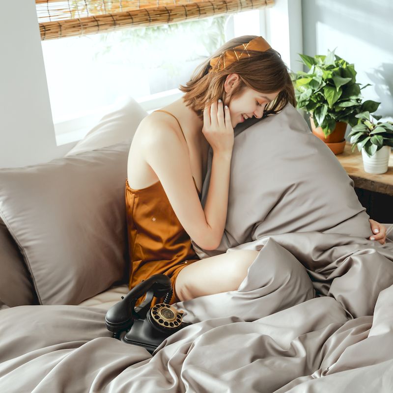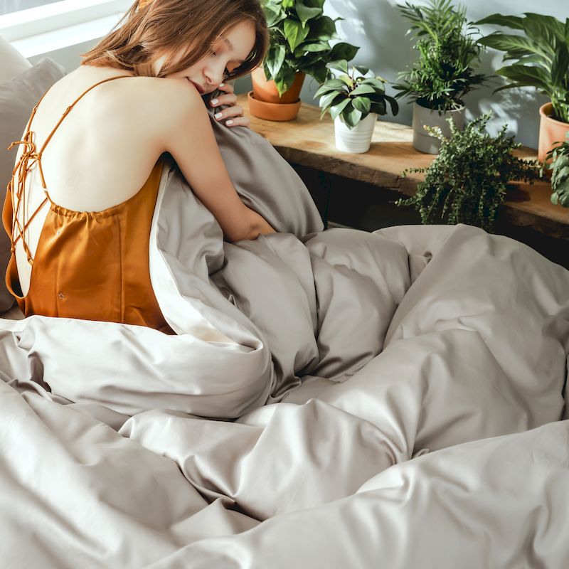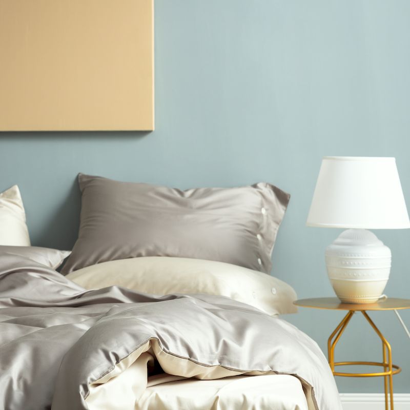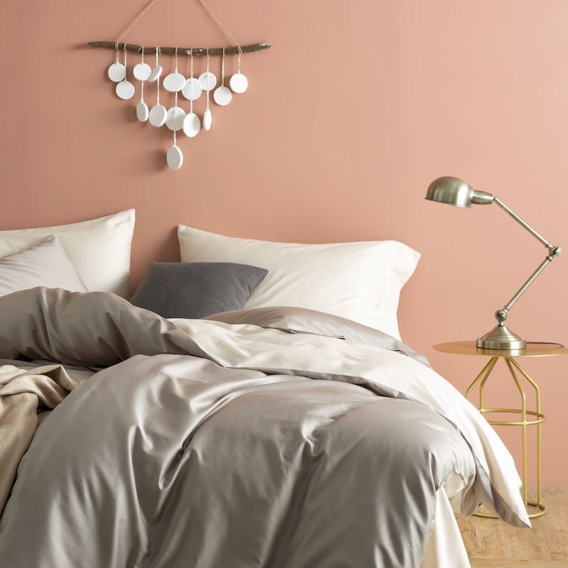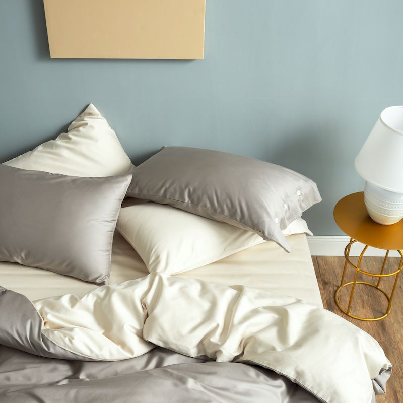 涞澳家纺2019新款60长绒棉平色二简易四件套亚麻灰配冰灿银