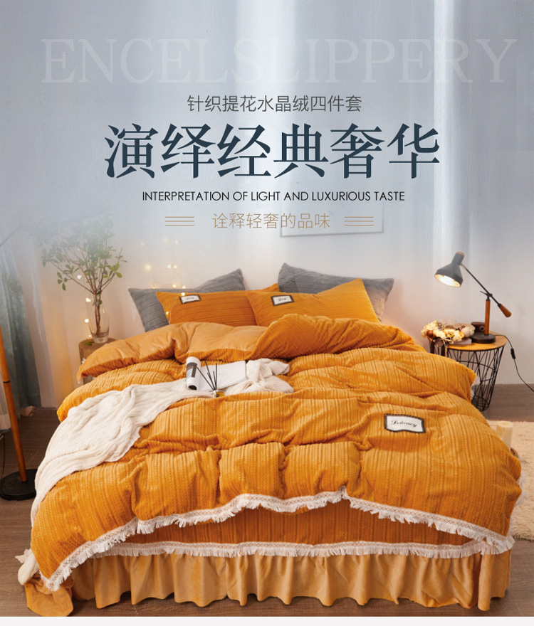 商品名称:菊上家纺 2019新款柔软针织法莱绒水晶绒牛奶绒系列四件套