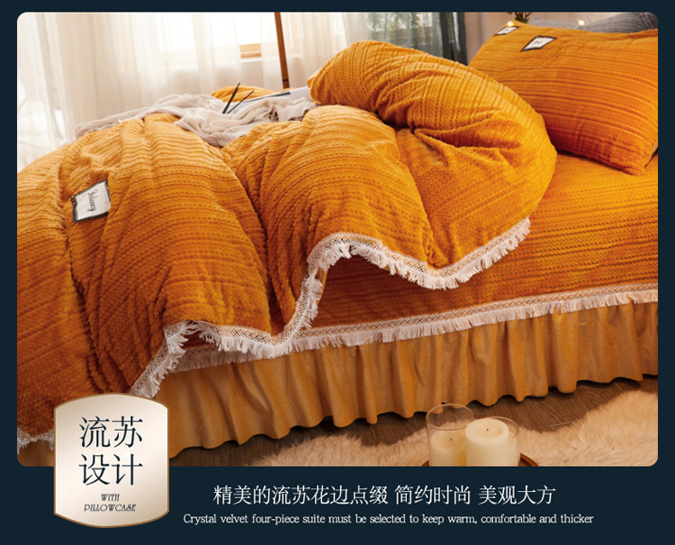 (总)菊上家纺 2025新款高克重5D雕花牛奶绒时尚仿皮草国潮风床盖四件套-羽妃系列,羽妃-米咖,羽妃-豆绿,羽妃-玫粉