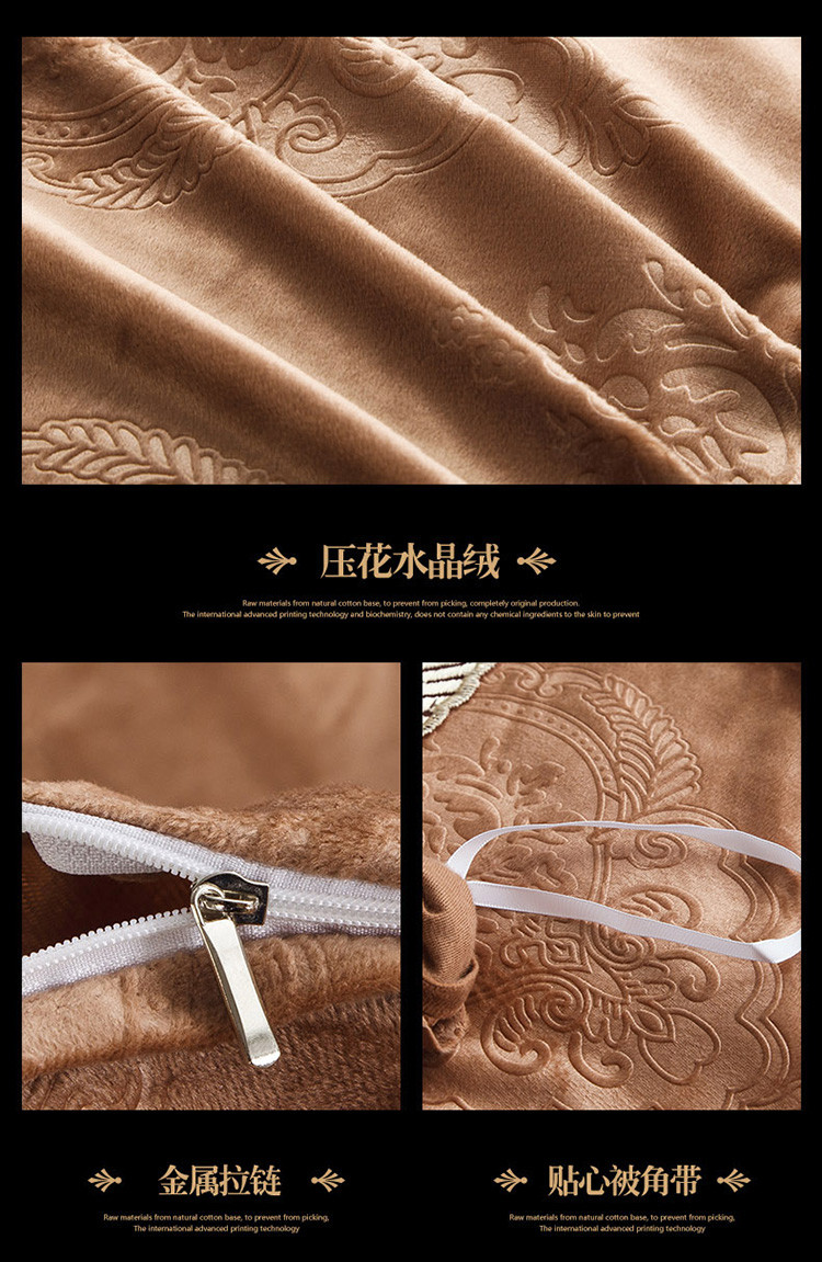 商品名称:兴美佳水晶绒压花拉链款四件套-豪庭盛世咖啡