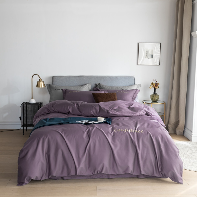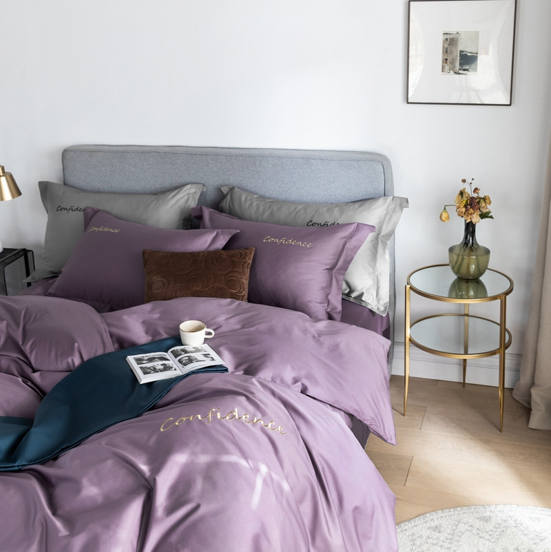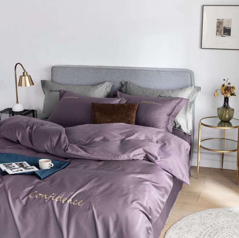 柚子家纺 100支贡缎澳棉绣花四件套图二 拾色丁香紫