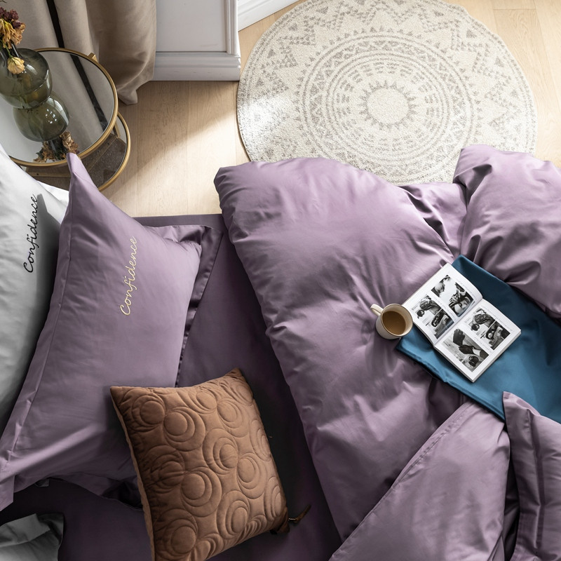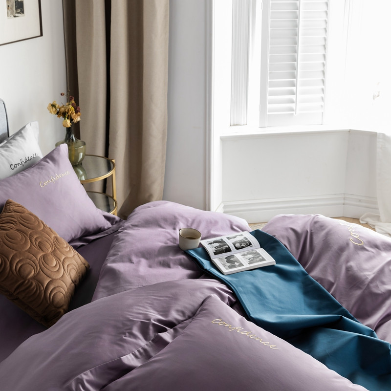 商品名称:柚子家纺 100支贡缎澳棉绣花四件套图二 拾色丁香紫