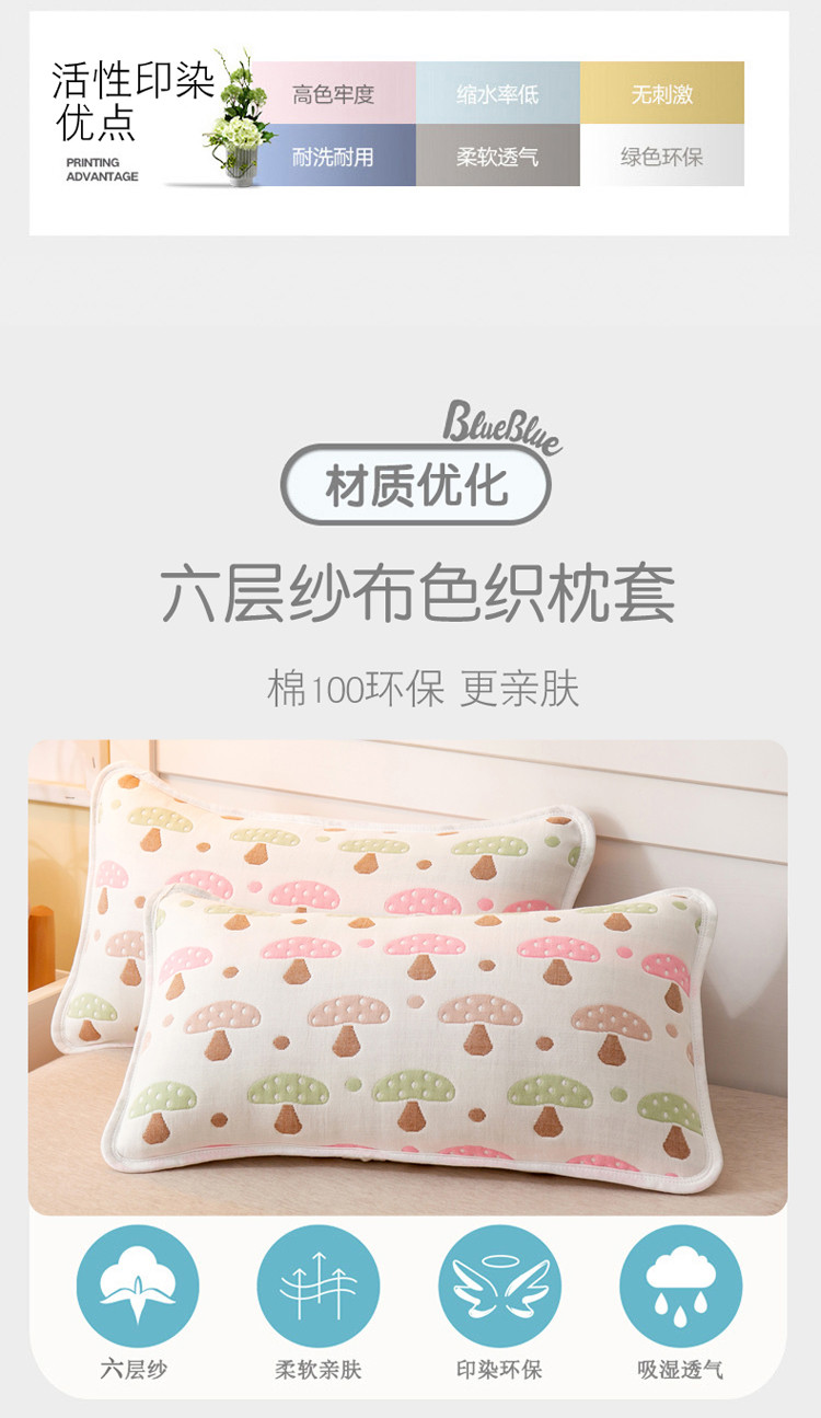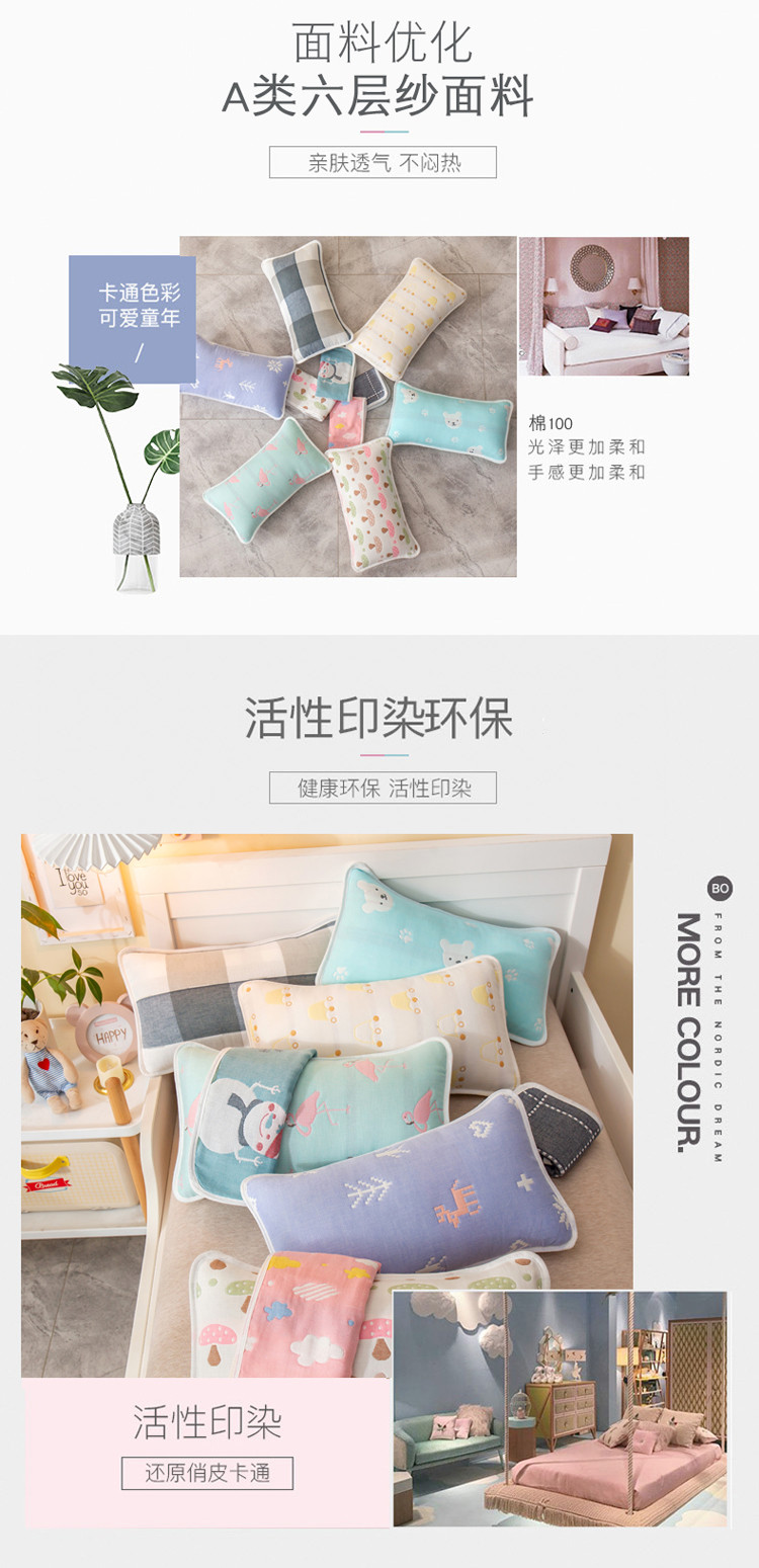 商品名称:A类纯棉六层纱布枕套婴儿童幼儿园枕皮全棉宝宝枕头套甜蜜小熊蓝