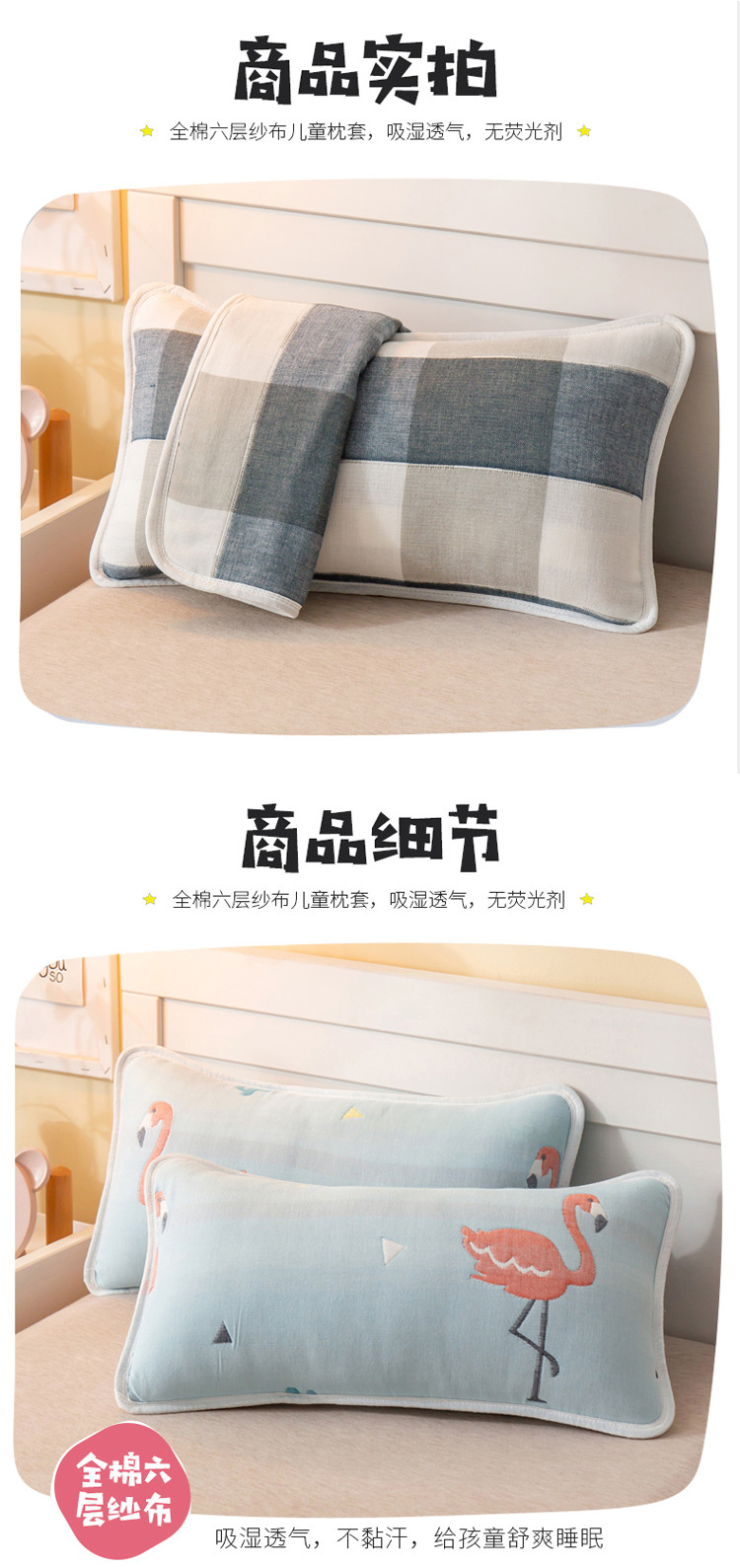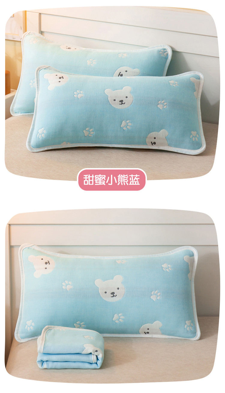A类纯棉六层纱布枕套婴儿童幼儿园枕皮全棉宝宝枕头套甜蜜小熊蓝