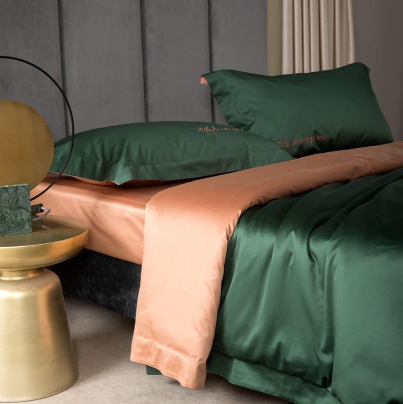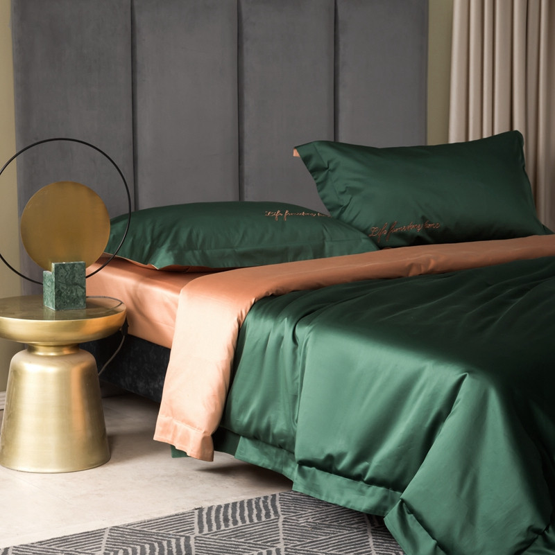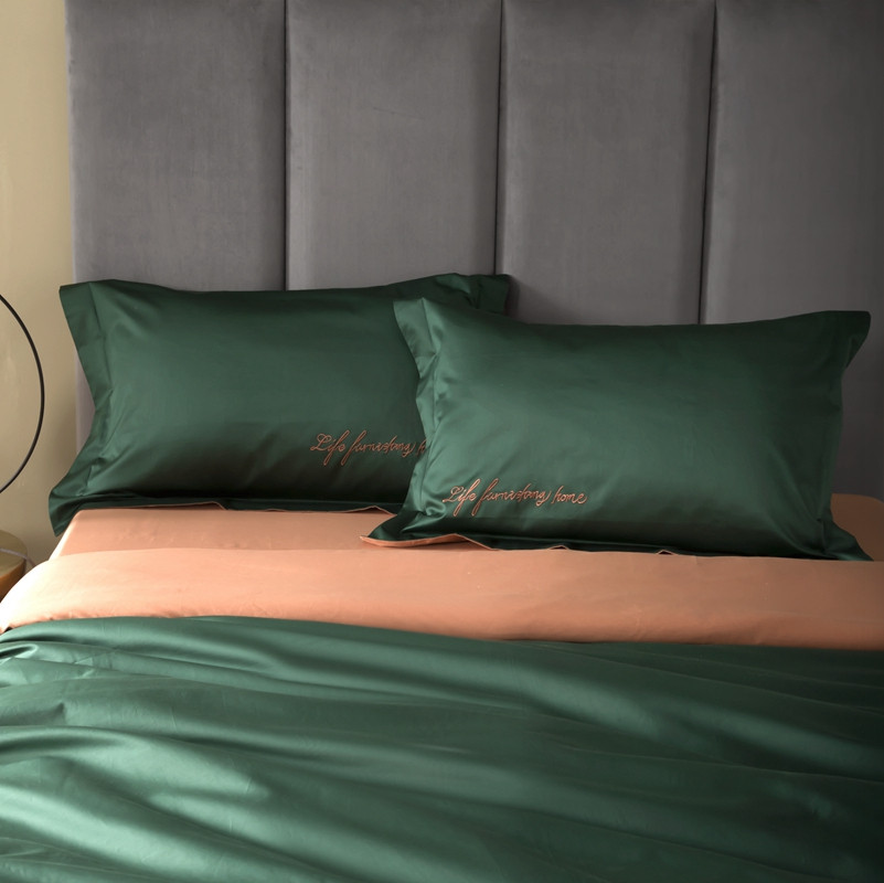 太古汇 2020新款纯色双拼绣花四件套 松花绿