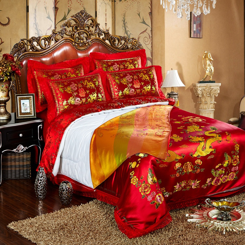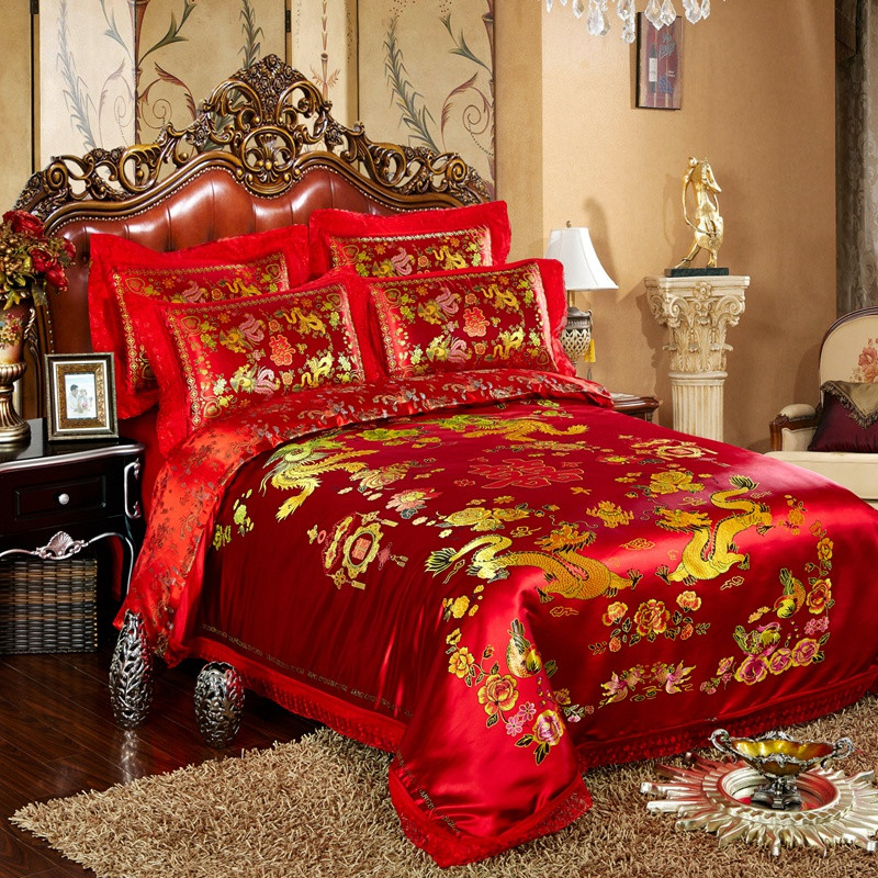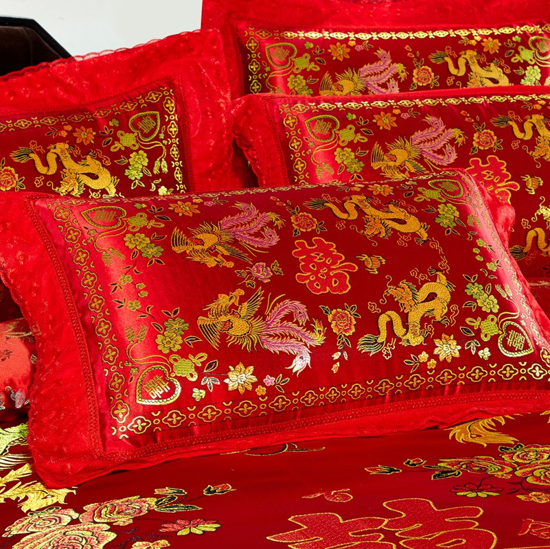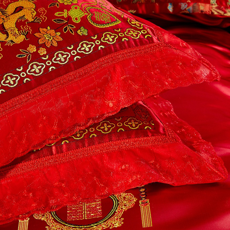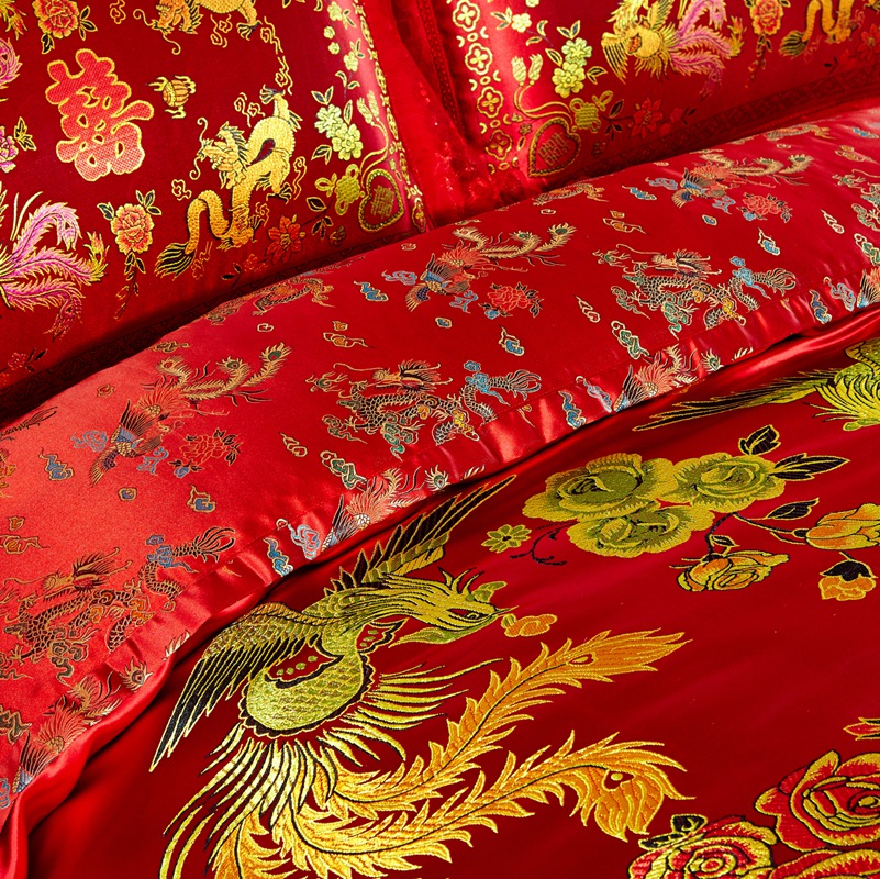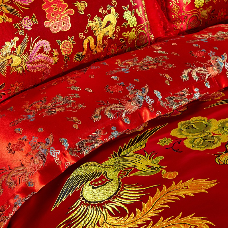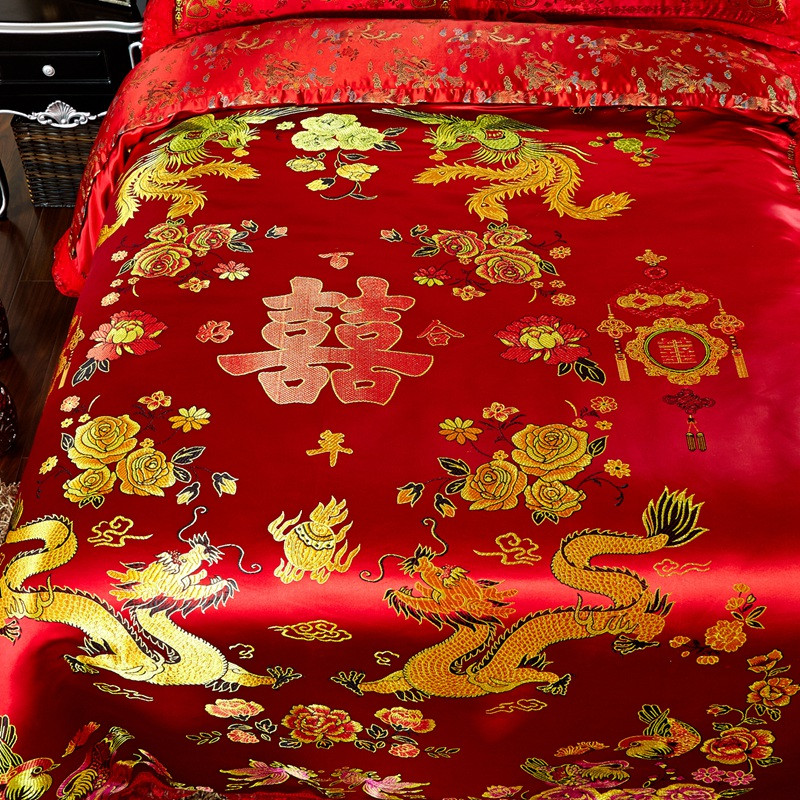 欣喜来 2020新款绸缎婚庆脱卸款四件套 龙凤双喜-红