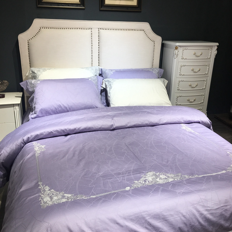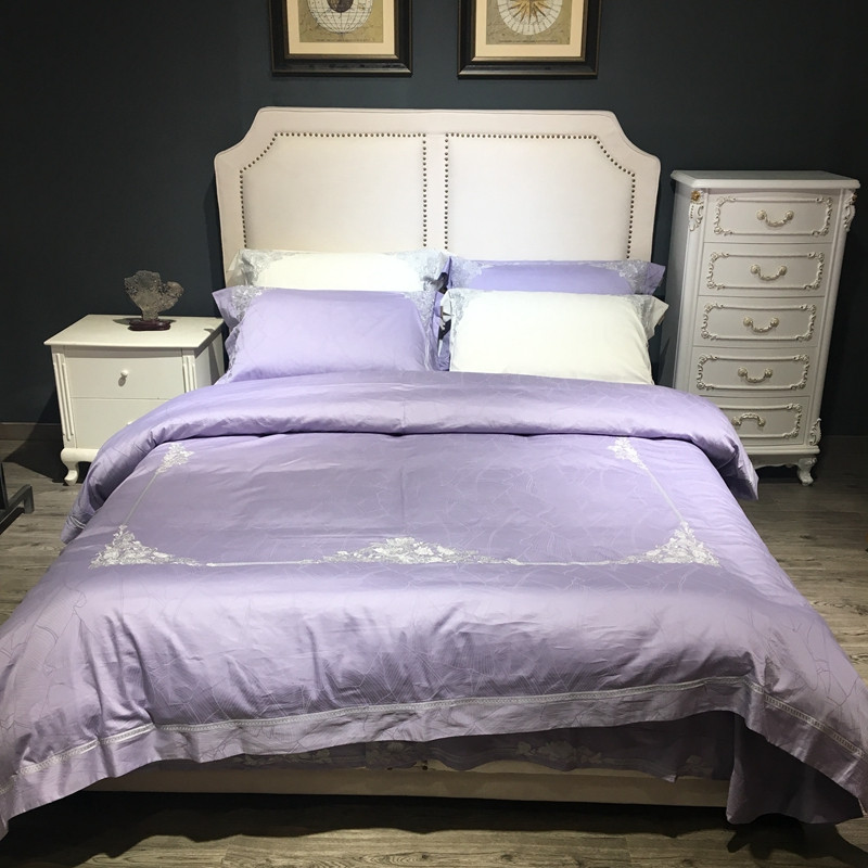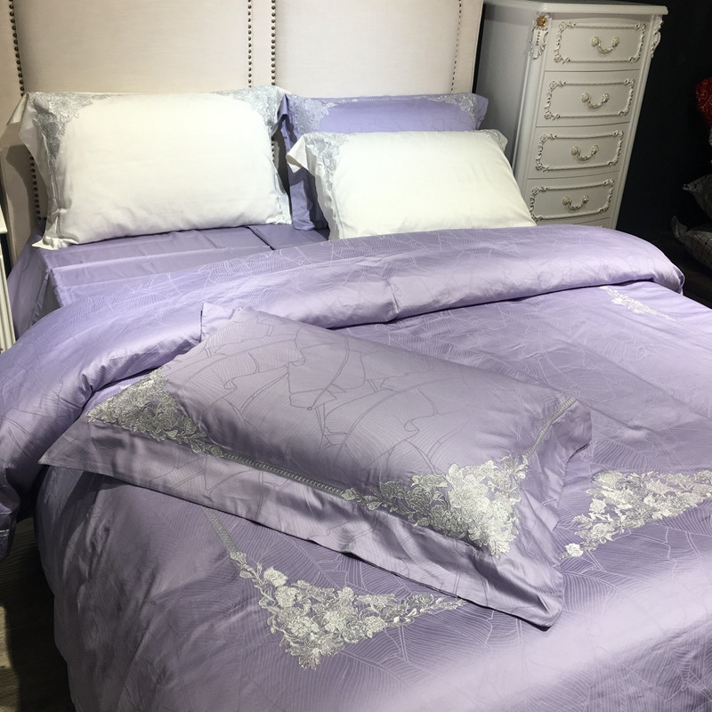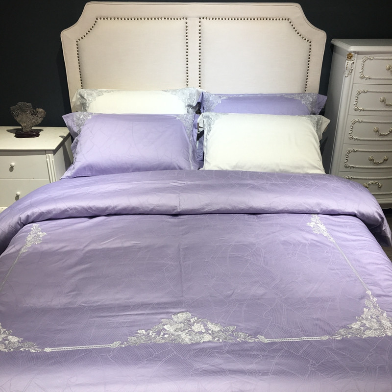 总玖玖爱家纺 纯棉100支贡缎长绒棉刺绣被套三件套四件套加大四件套,白色,高级灰,卡其,蓝灰,绿色,浅桔,深蓝,紫豆沙