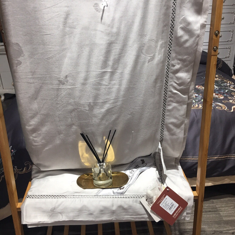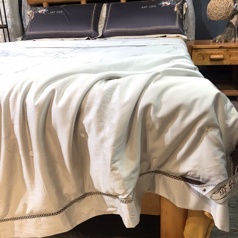 总玖玖爱家纺 纯棉100支贡缎长绒棉刺绣被套三件套四件套加大四件套,白色,高级灰,卡其,蓝灰,绿色,浅桔,深蓝,紫豆沙