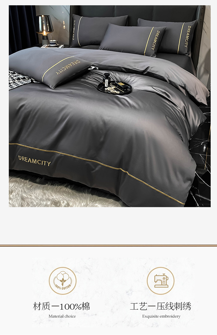 (总)DC 2024新款60支长绒棉刺绣四件套--斯诺系列,中灰,云川绿,优雅粉,奶茶色,宾利蓝,山灰,本白,梵星蓝,风铃蓝,香叶粉