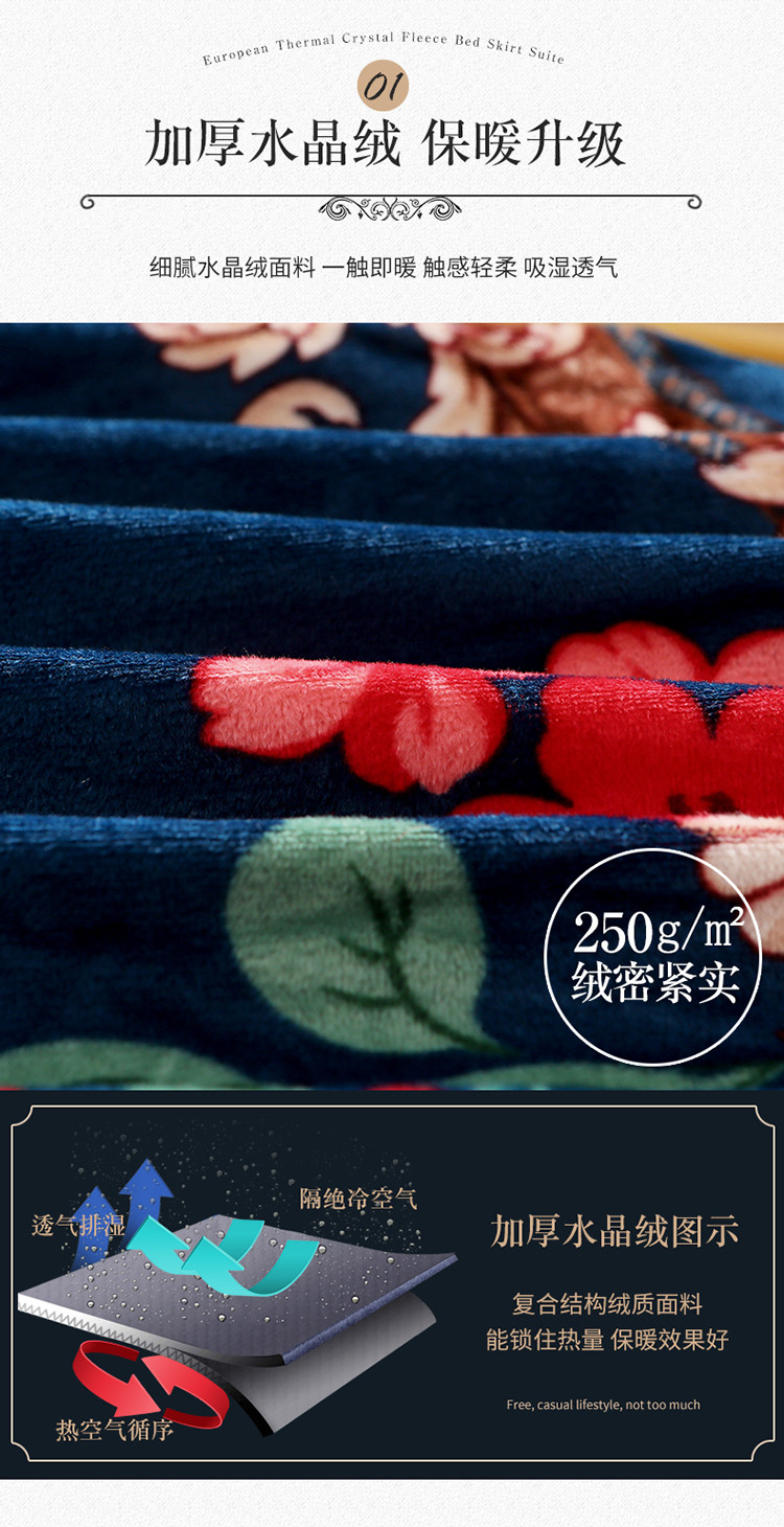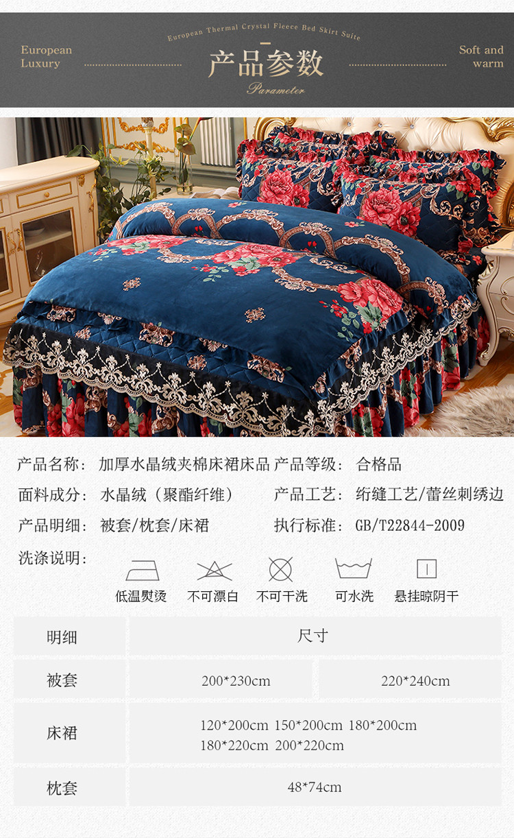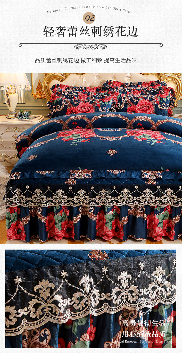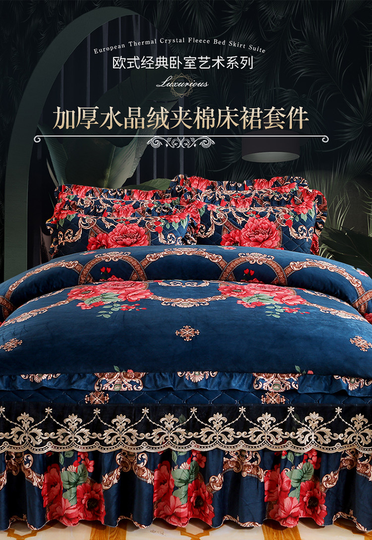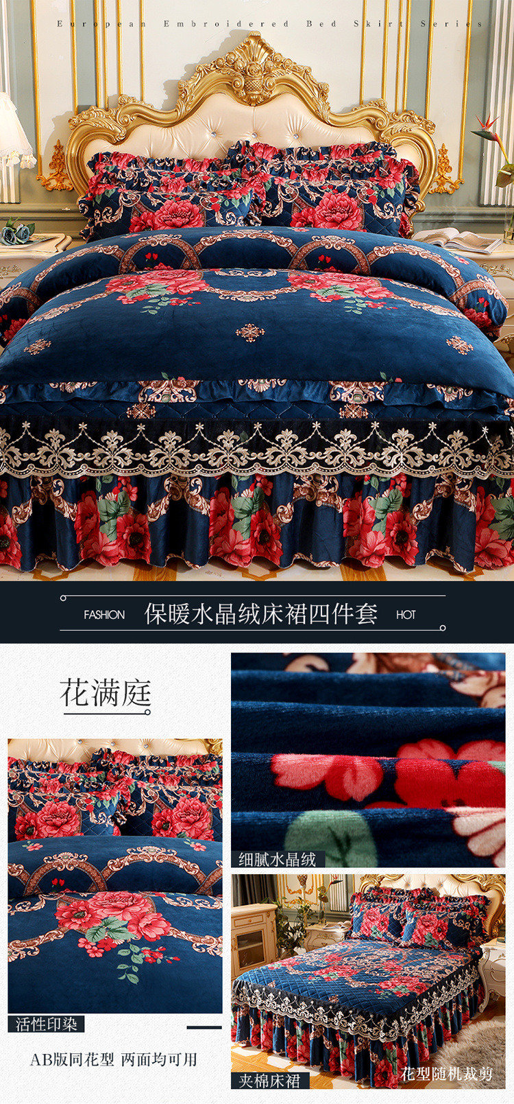 当前位置: 91家纺网 > 商品网购 > 床品套件 > 四件套 > 水晶绒四件套 > 宜凡家纺 2021新款夹棉水晶绒床裙四件套 花满庭