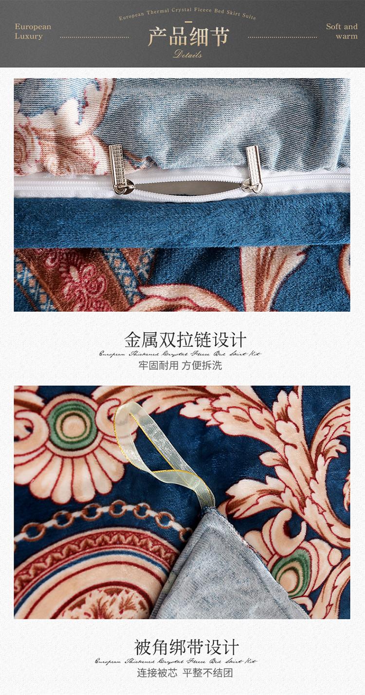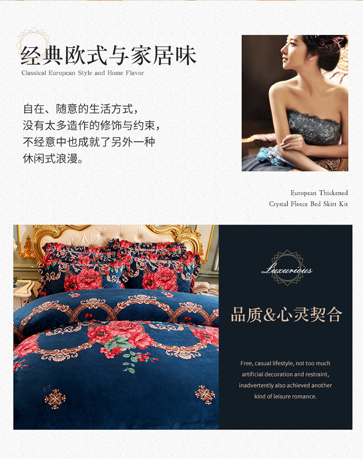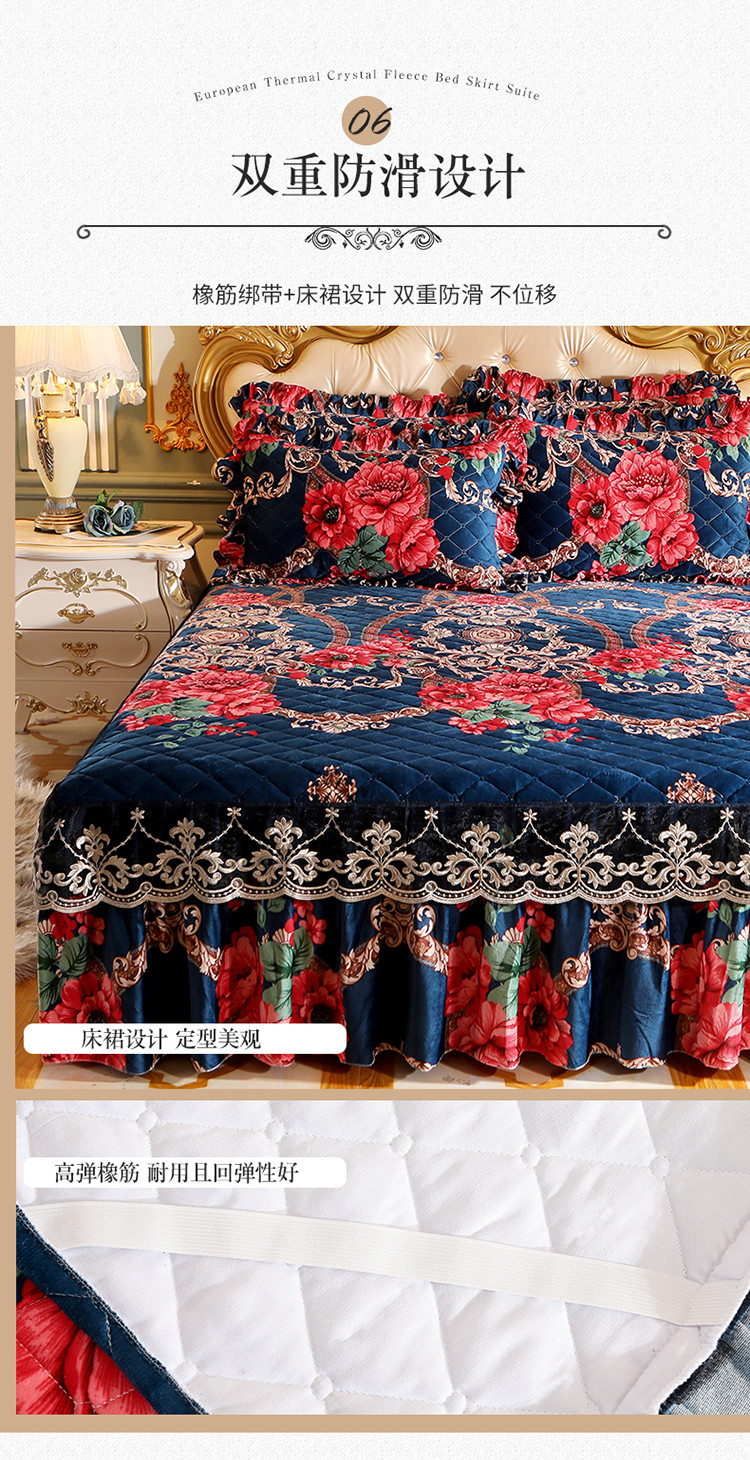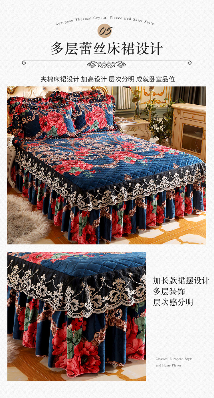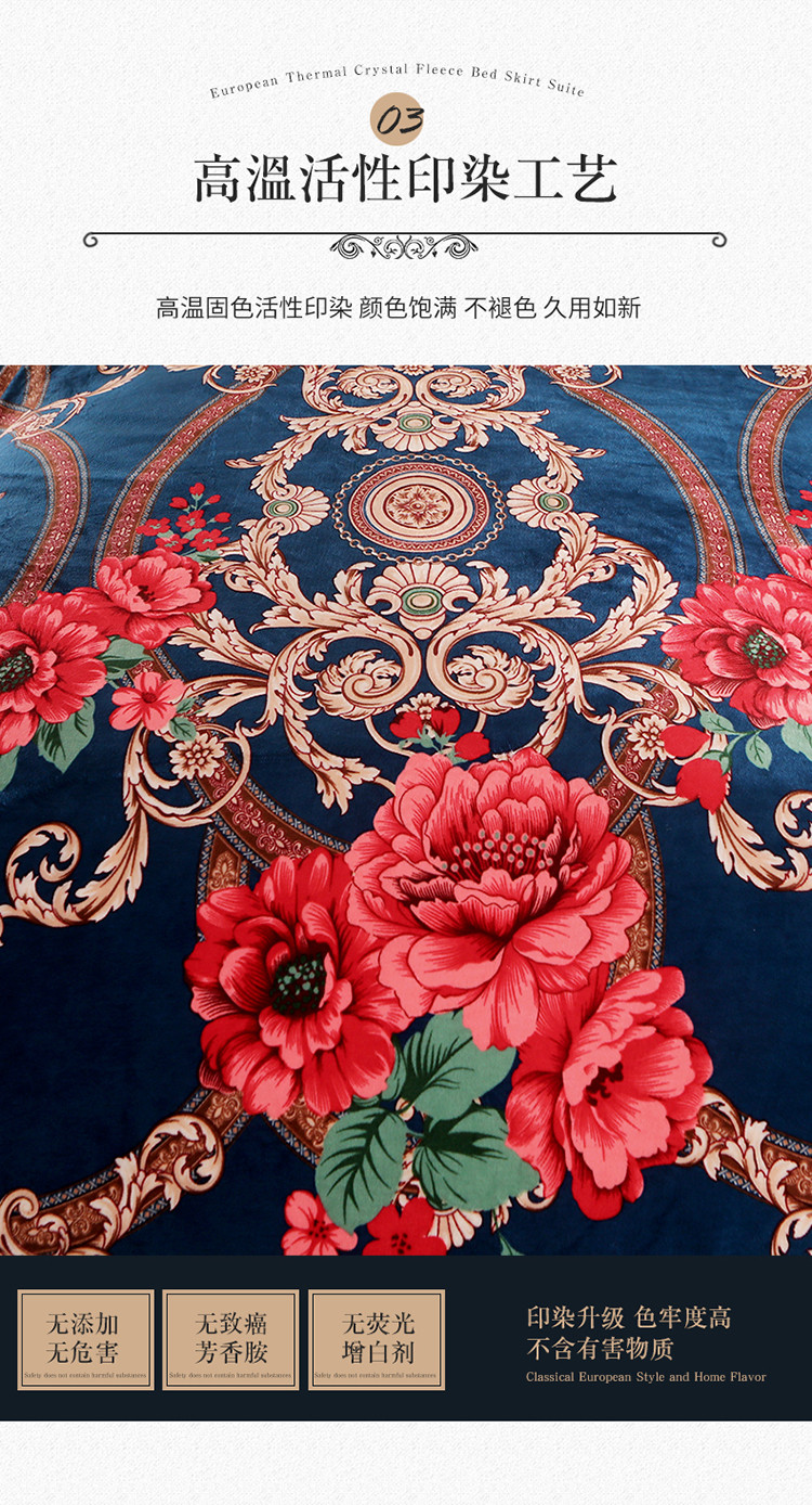 当前位置: 91家纺网 > 商品网购 > 床品套件 > 四件套 > 水晶绒四件套 > 宜凡家纺 2021新款夹棉水晶绒床裙四件套 花满庭