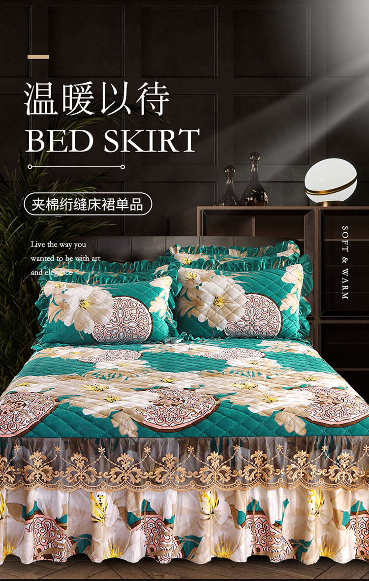 宜凡家纺 2021新款夹棉水晶绒单品床裙 镜花缘