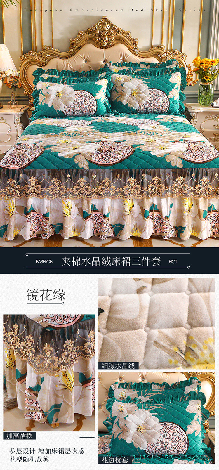 商品名称:宜凡家纺 2021新款夹棉水晶绒单品床裙 镜花缘