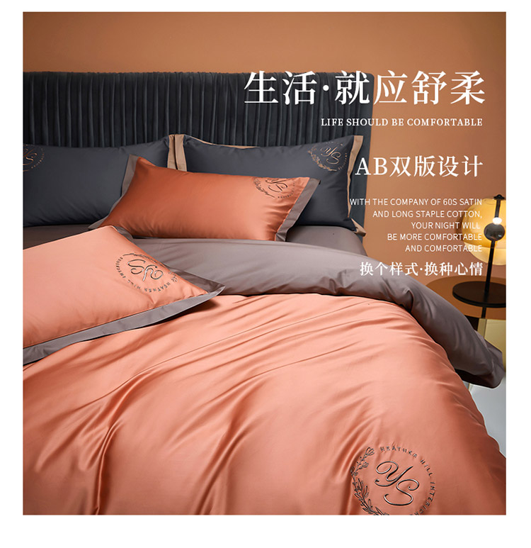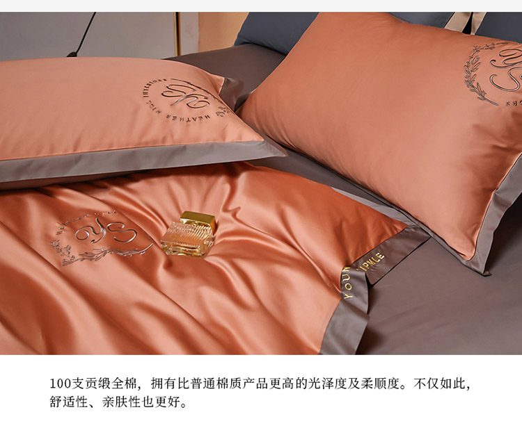 商品名称:爱缦2020澳棉100S长绒棉刺绣简系列四件套 时尚桔-咖