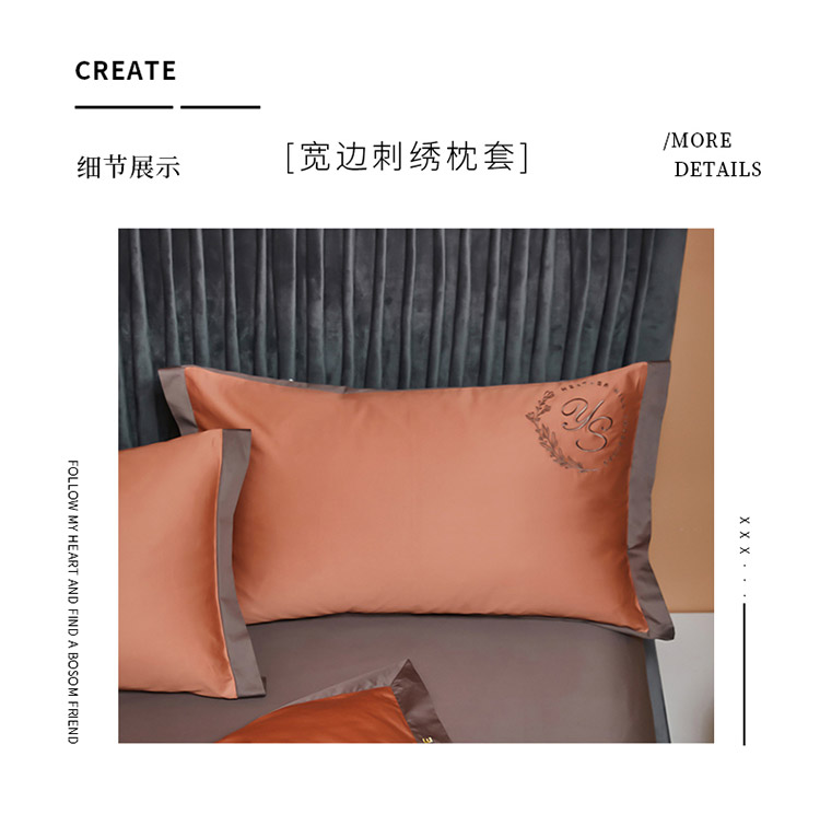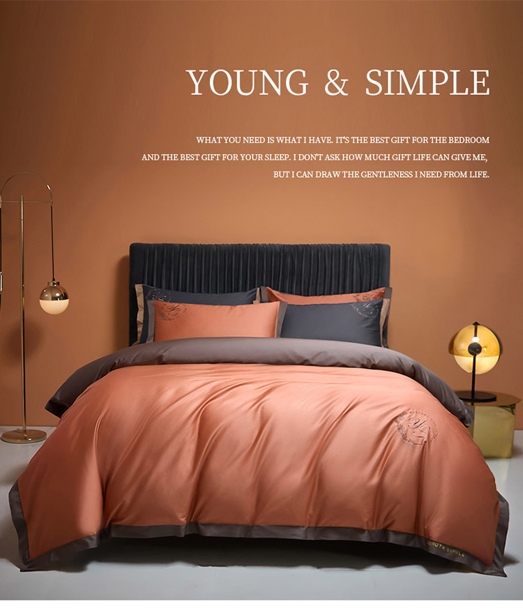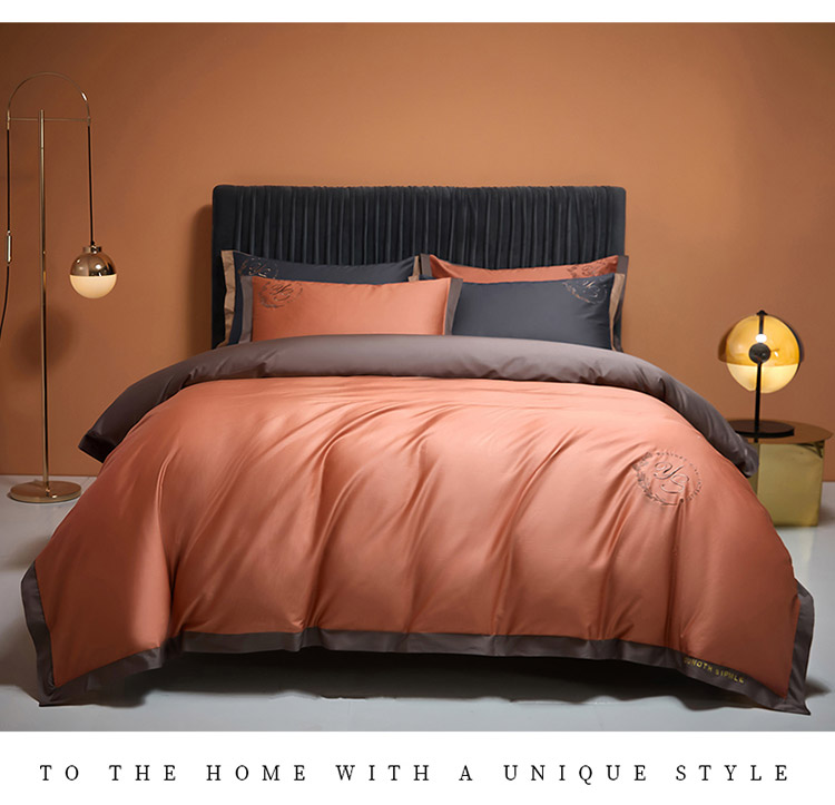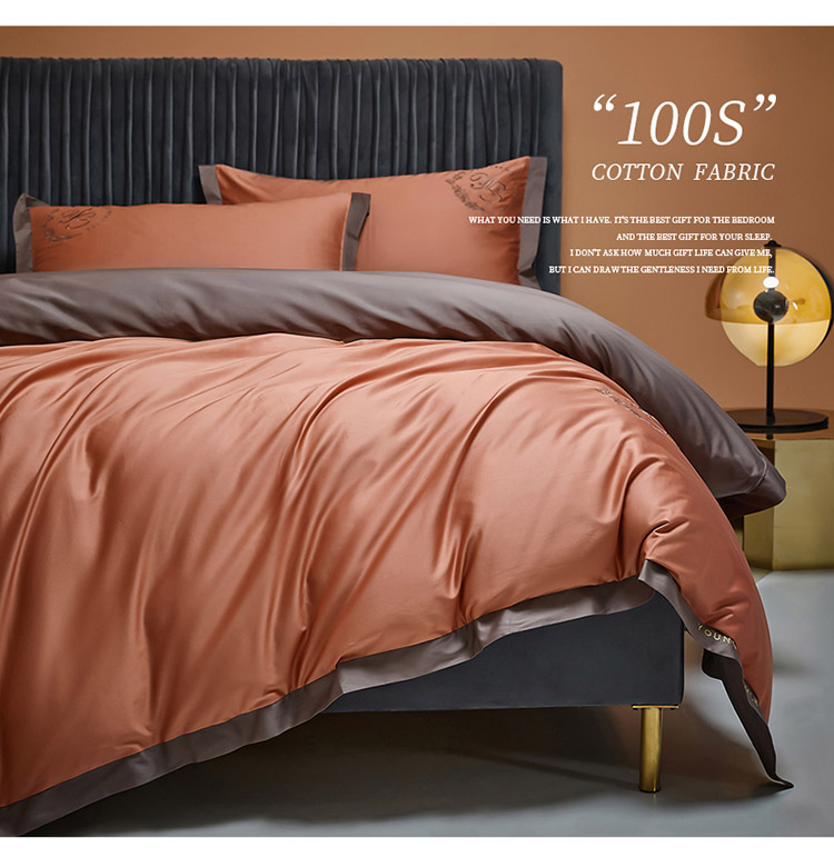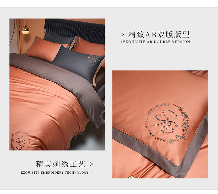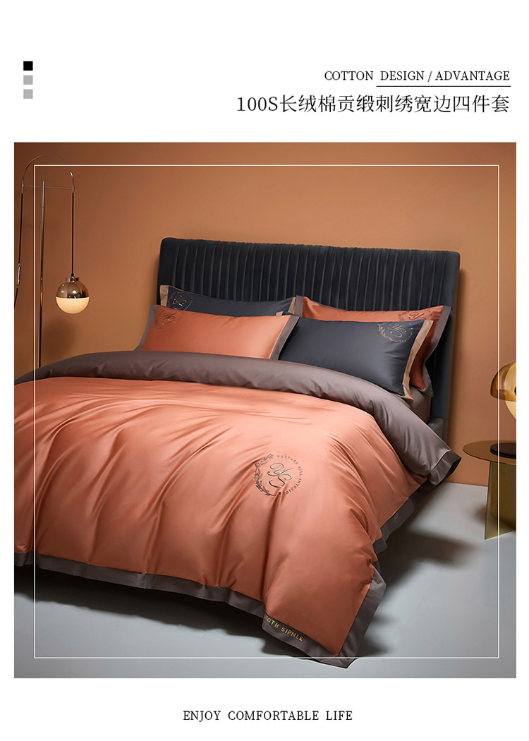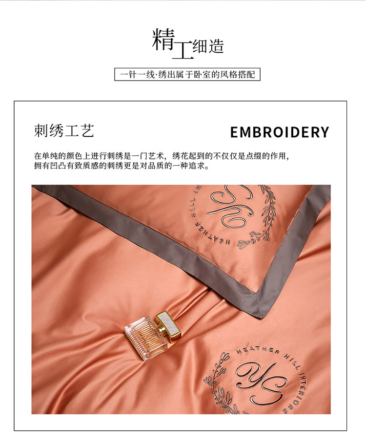 爱缦2020澳棉100S长绒棉刺绣简系列四件套 时尚桔-咖