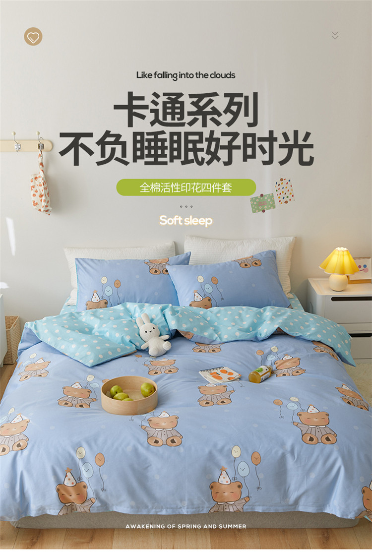 窝米 2021新款春季全棉卡通四件套 气球熊