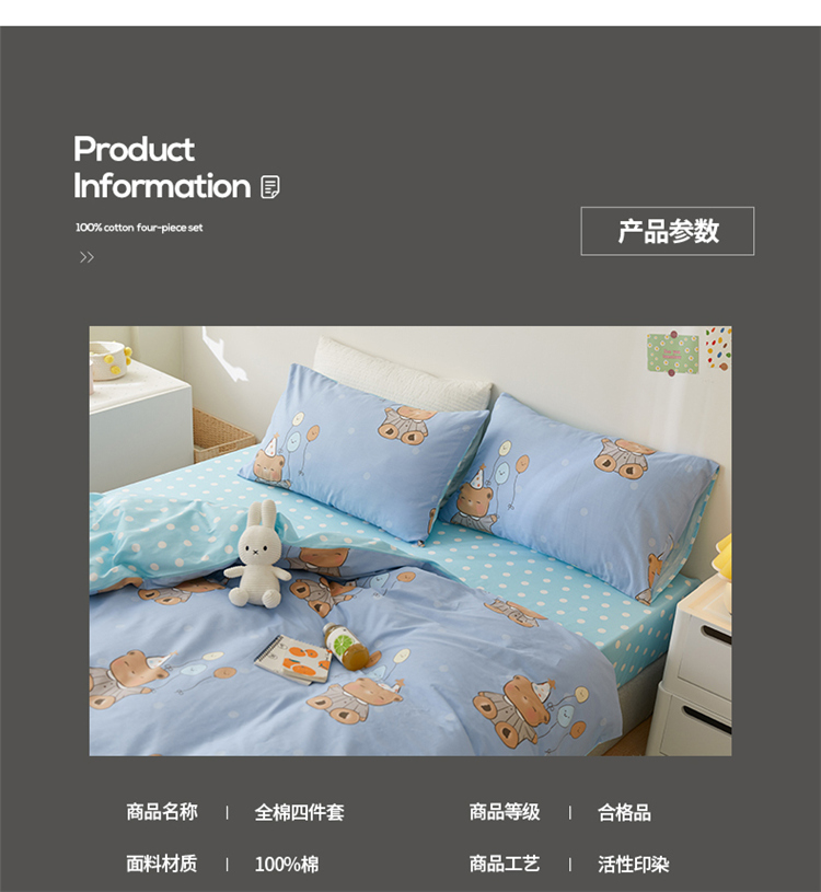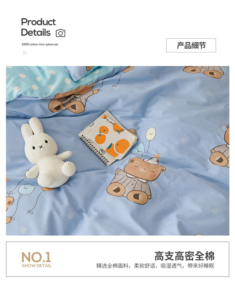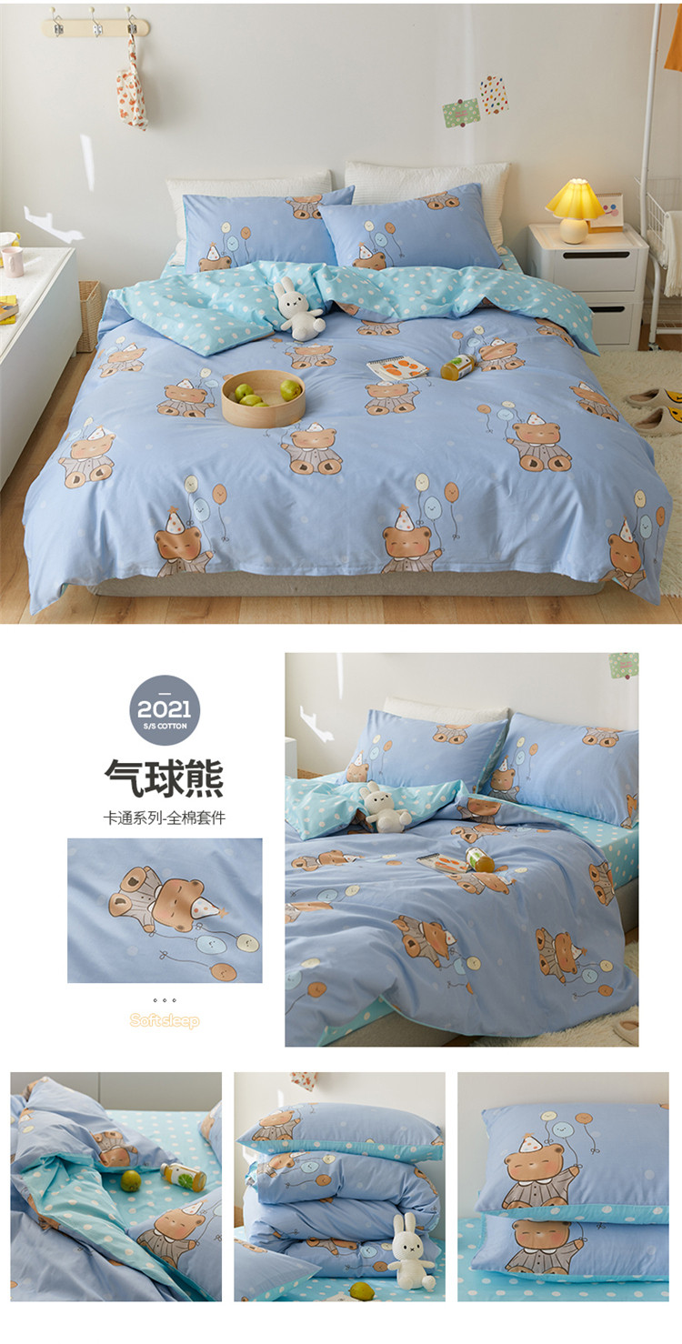 商品名称:窝米 2021新款春季全棉卡通四件套 气球熊