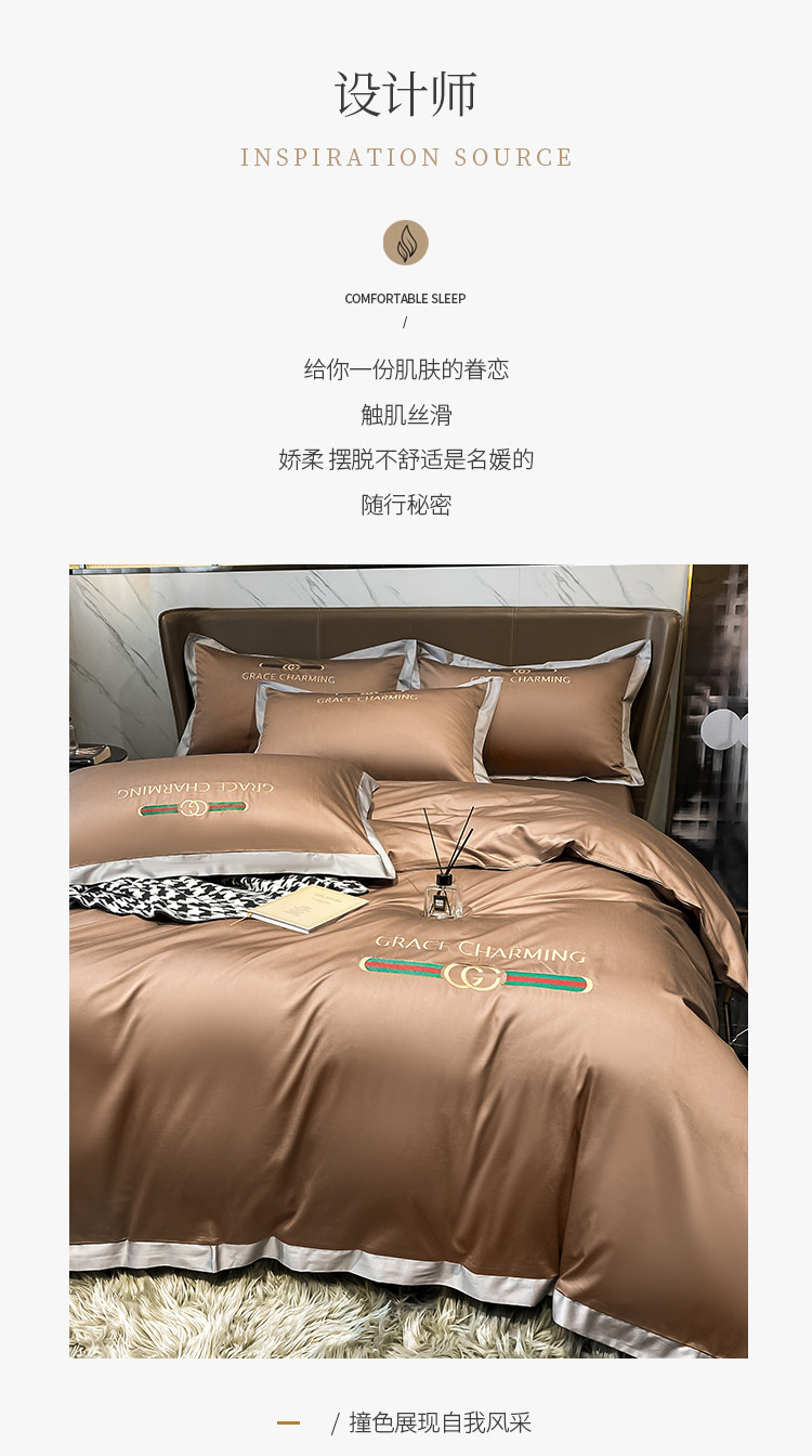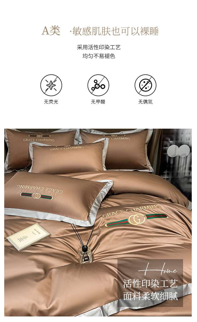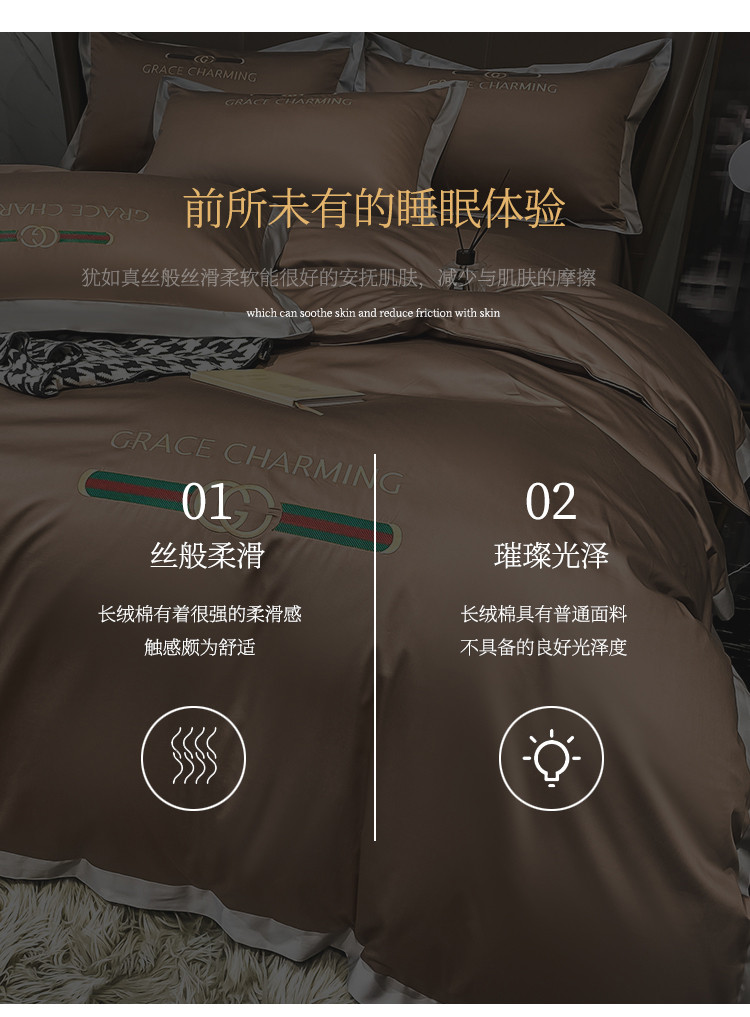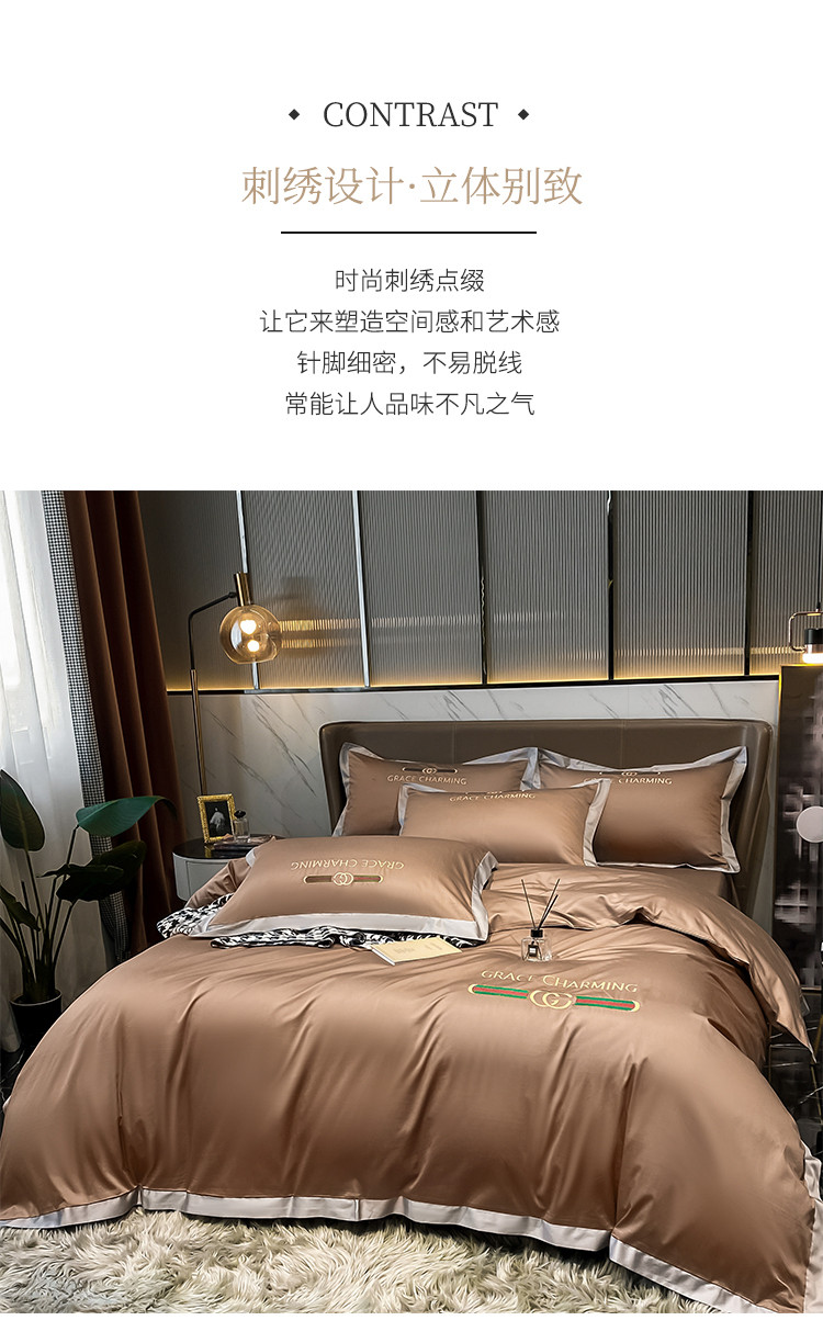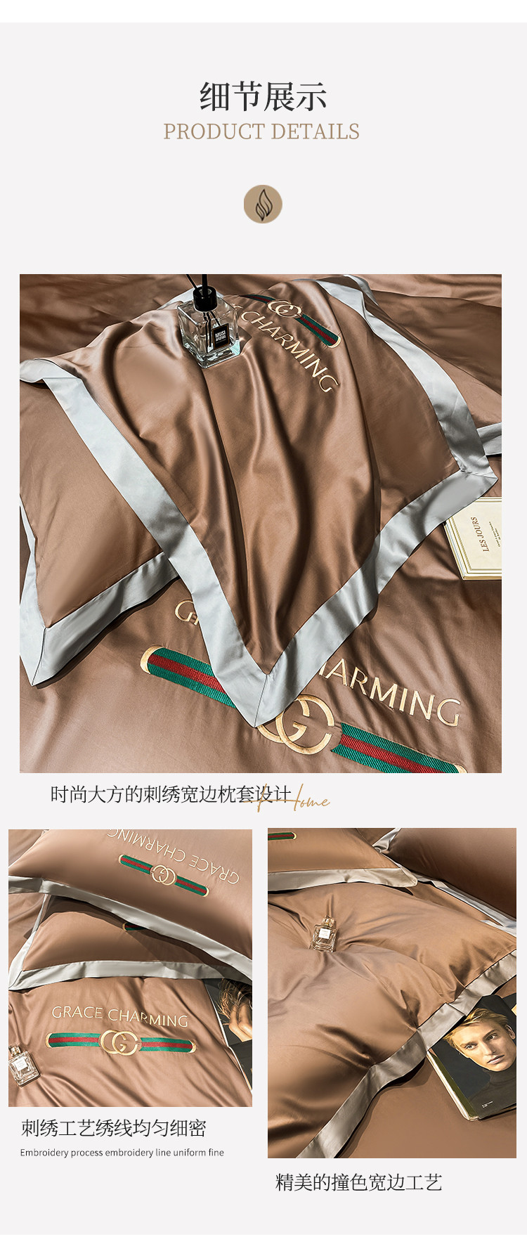 爱缦 2021新款格蕾丝实拍100支澳棉四件套 巧克力色