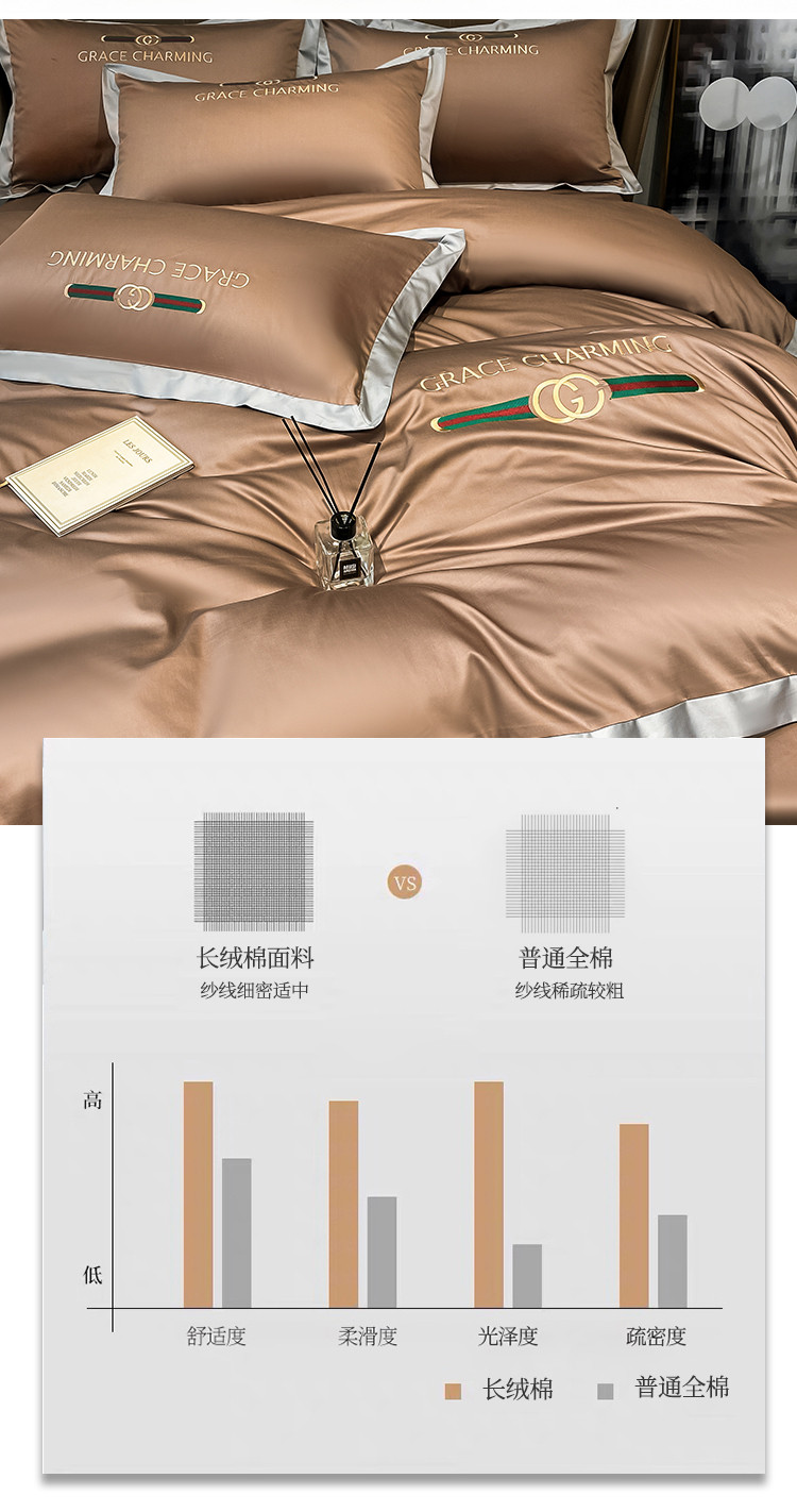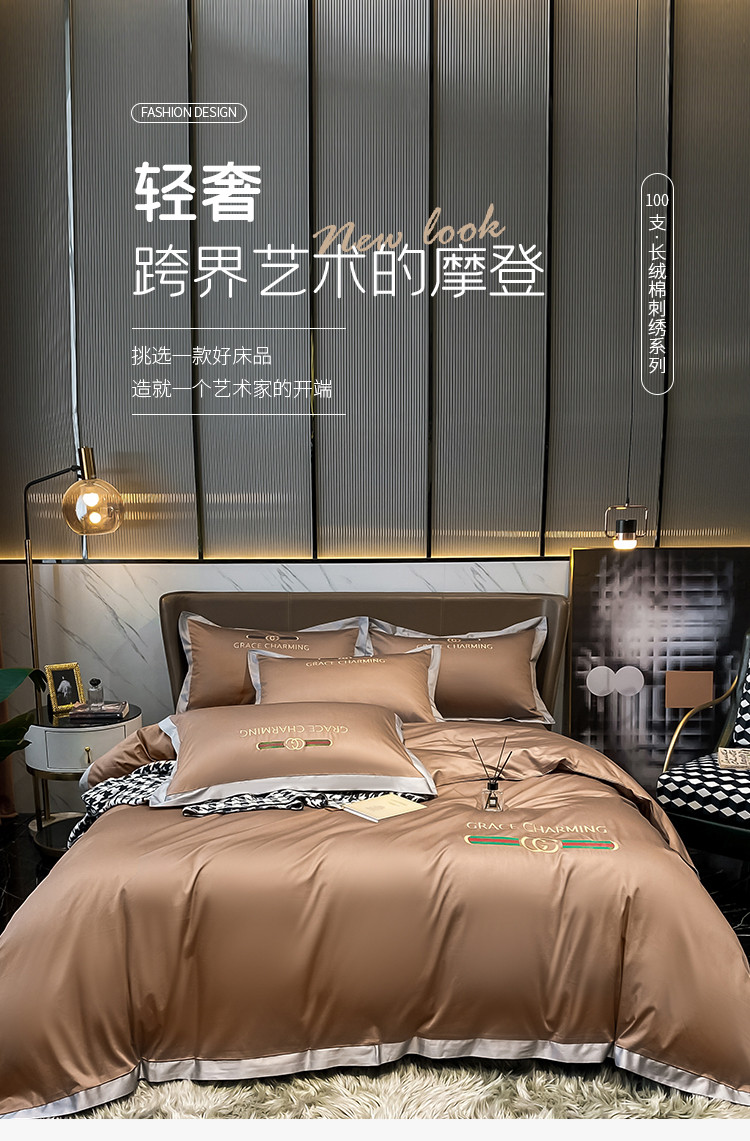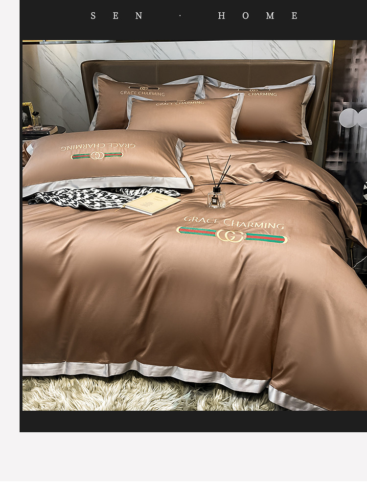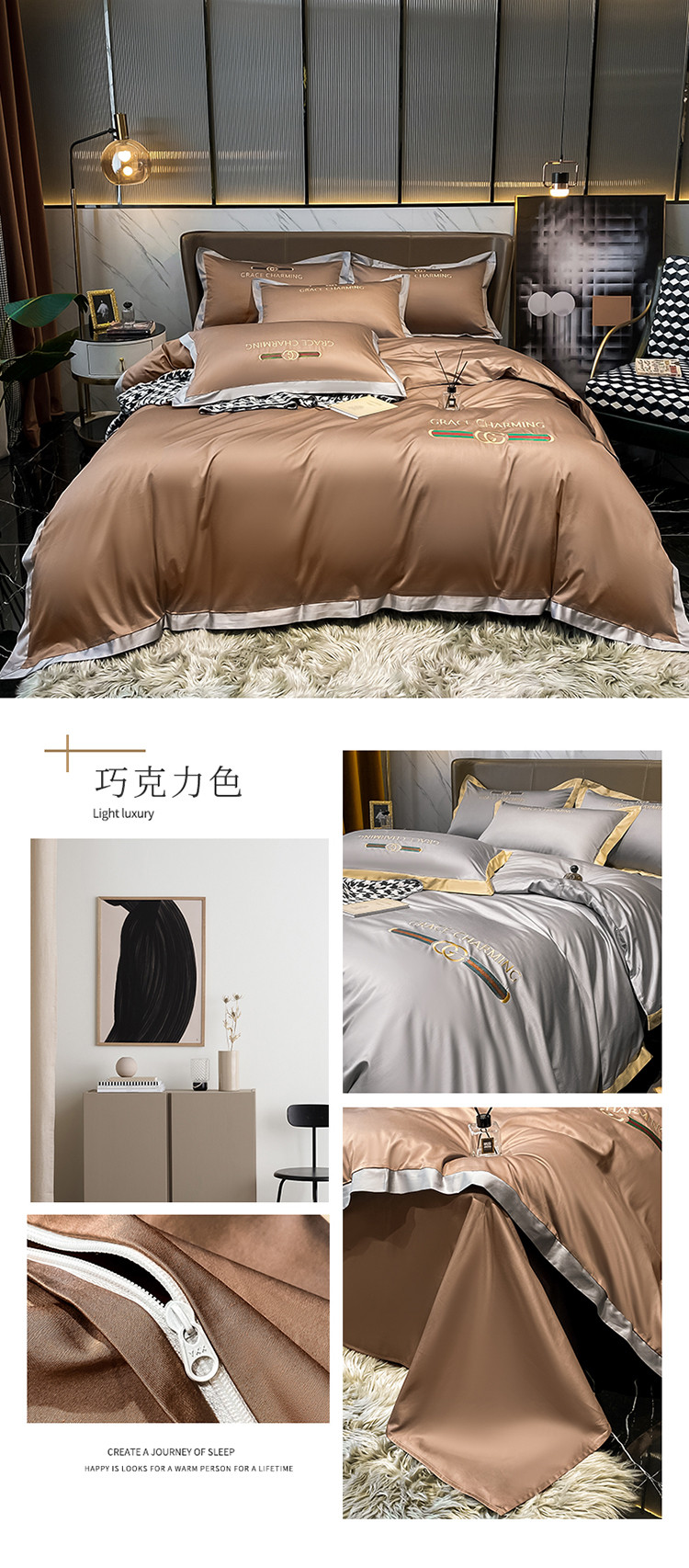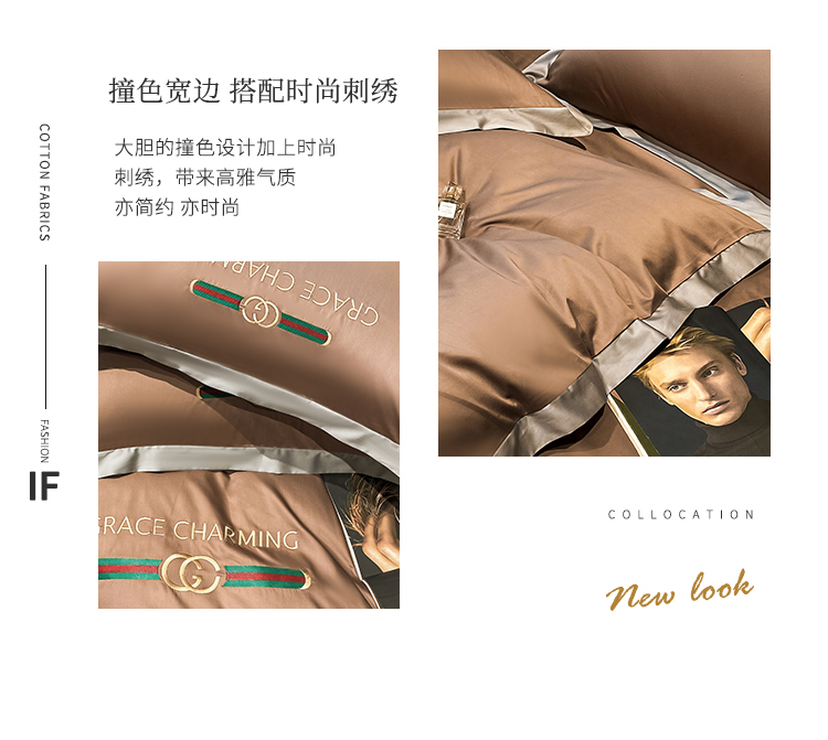 爱缦 2021新款格蕾丝实拍100支澳棉四件套 巧克力色