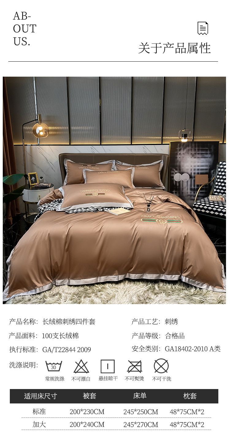 (总)爱缦 2026新款100S全棉CR工艺极简轻奢刺绣四件套-福纳醒狮(券后控价:标准378,大号398),福纳醒狮