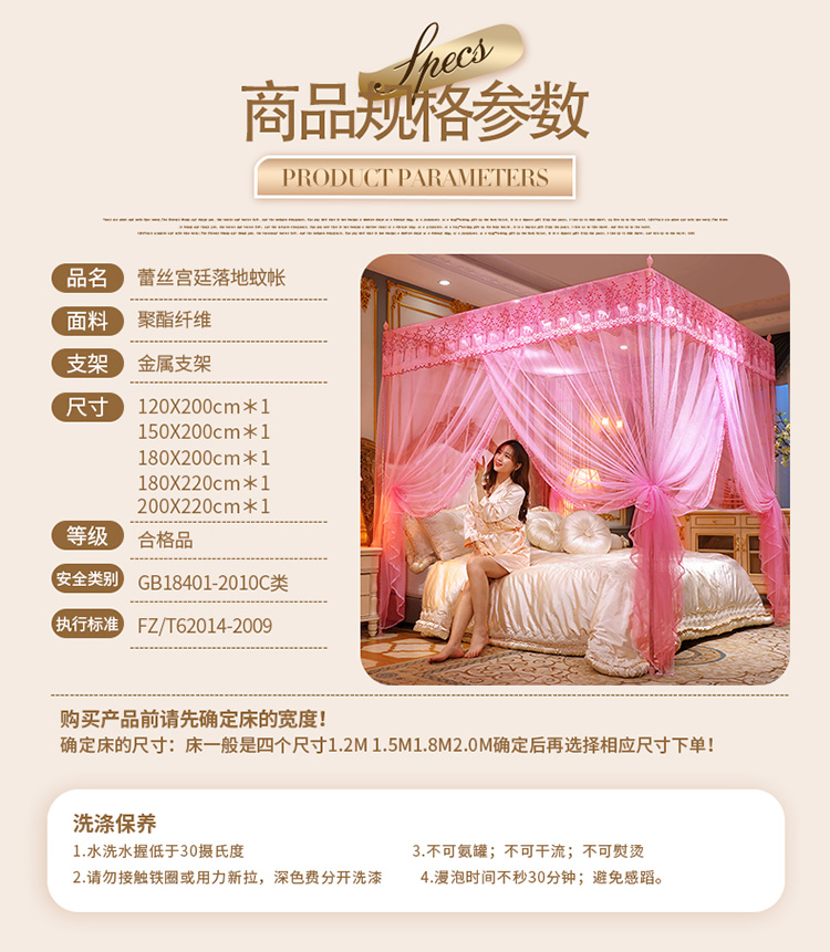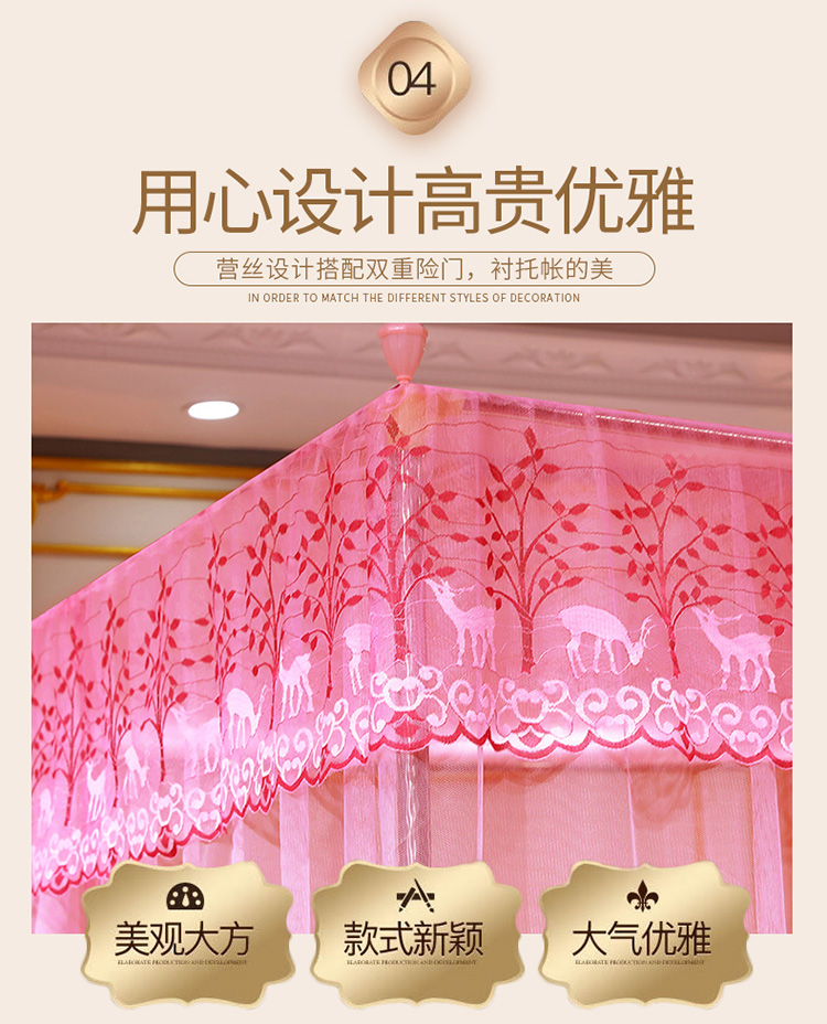 当前位置: 91家纺网 > 商品网购 > 床上用品 > 蚊帐 > 宫廷蚊帐 > 迷仙巢2022新款蕾丝宫廷落地蚊帐-C20小鹿情缘粉色