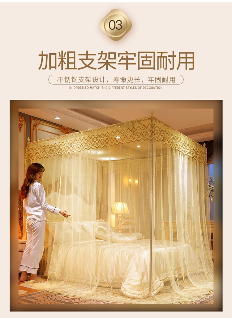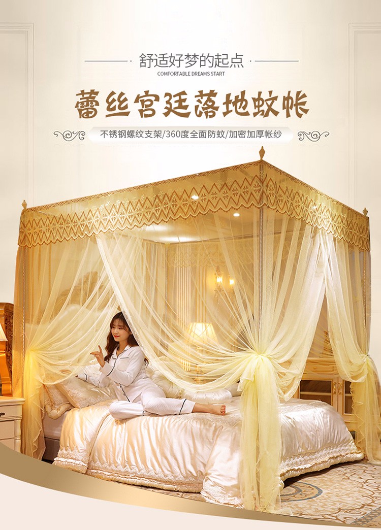 当前位置: 91家纺网 > 商品网购 > 床上用品 > 蚊帐 > 宫廷蚊帐 > 迷仙巢家纺 2021新款蕾丝宫廷落地蚊帐-格调人生米黄
