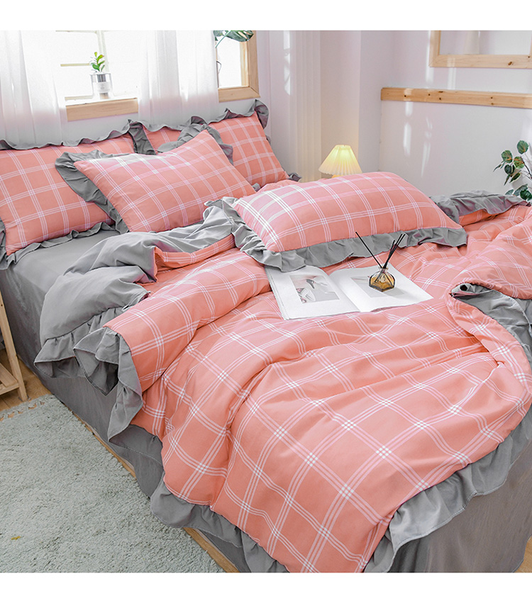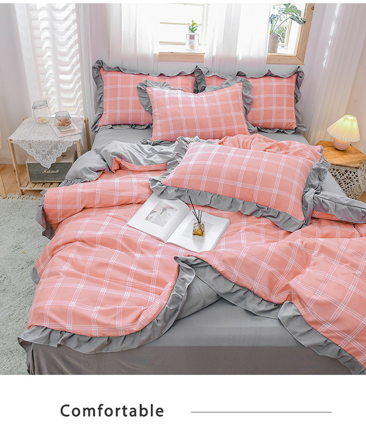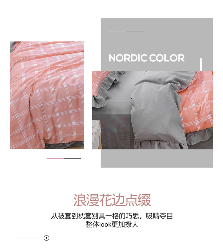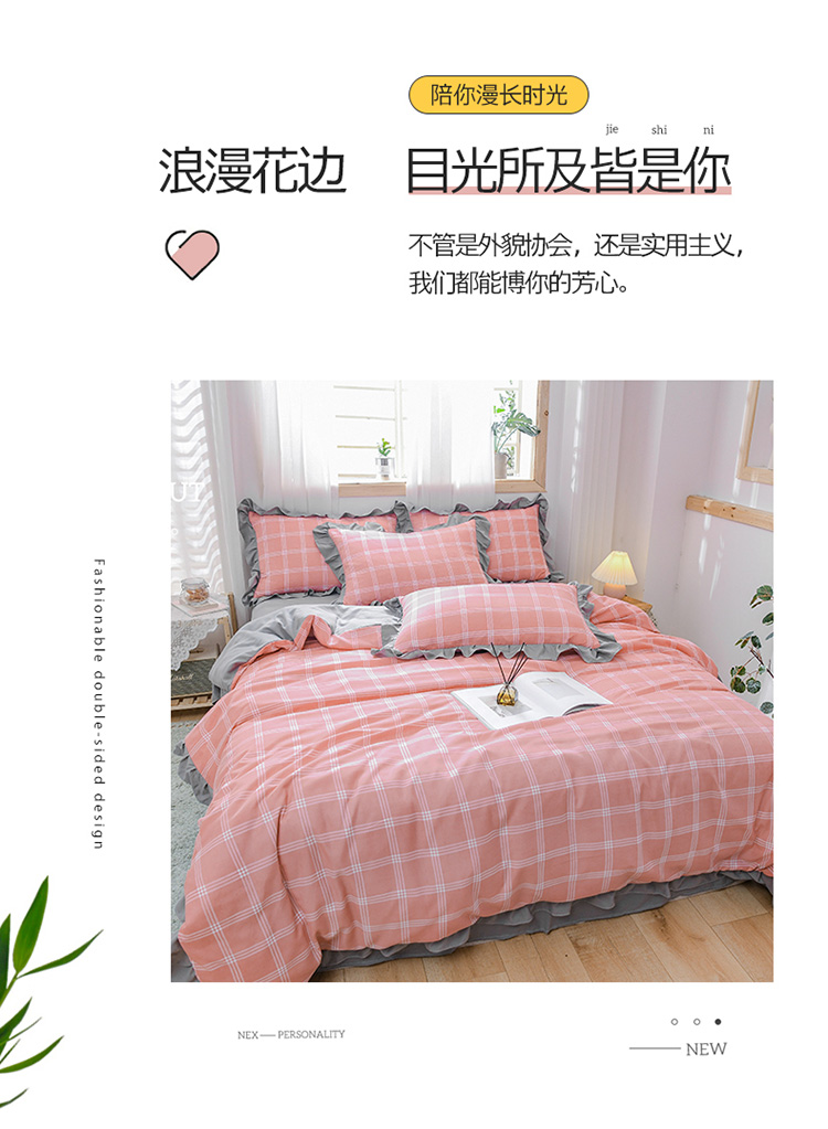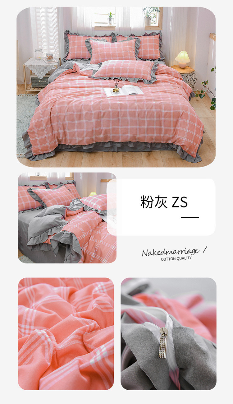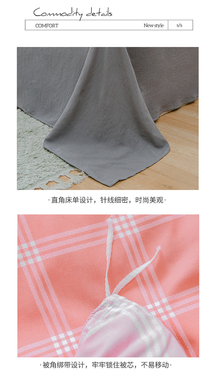商品名称:绒兔兔 2021韩版水洗棉时尚格四件套 粉灰