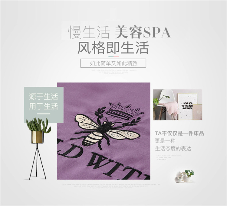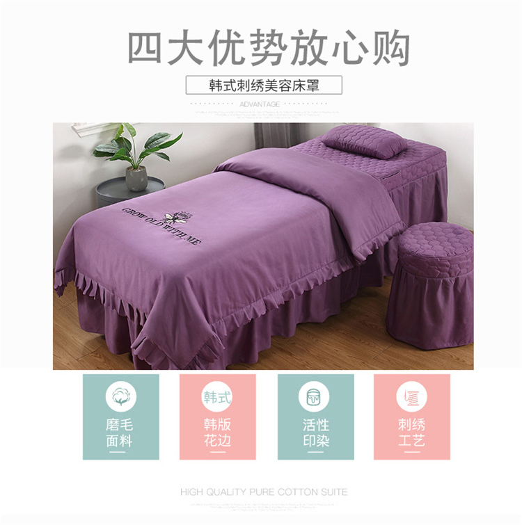 • 91家纺网 家纺一手货源 找家纺 乐逸家纺 2023新款亲肤款刺绣美容床罩 亲肤韩版刺绣款 香槟紫