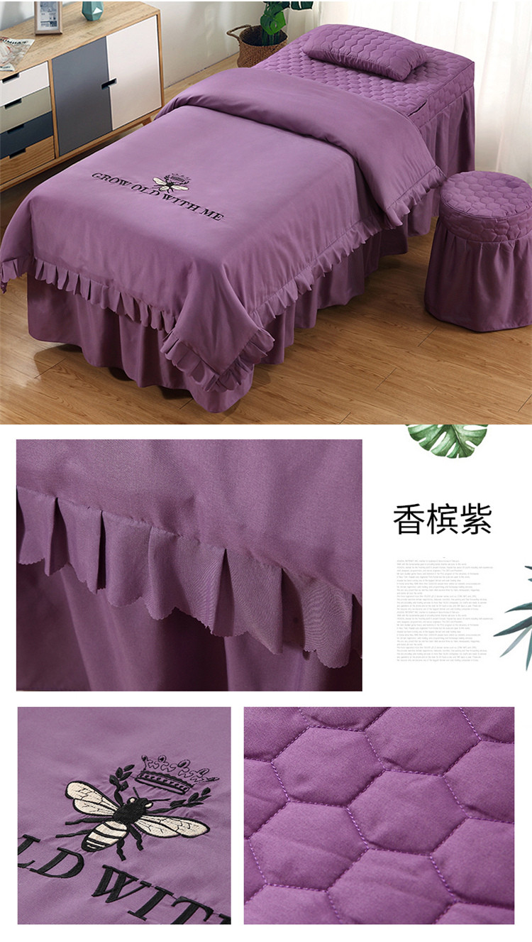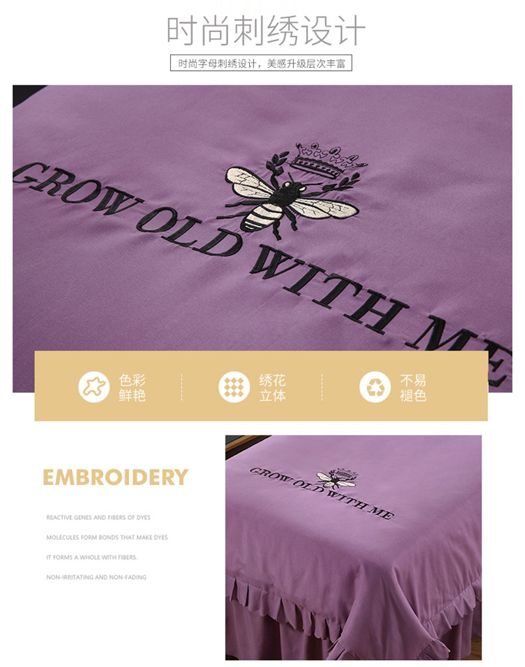 乐逸家纺 2023新款亲肤款刺绣美容床罩 亲肤韩版刺绣款 香槟紫
