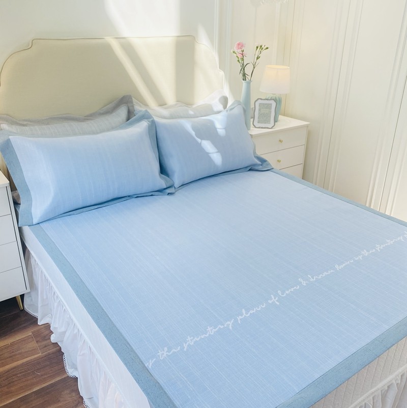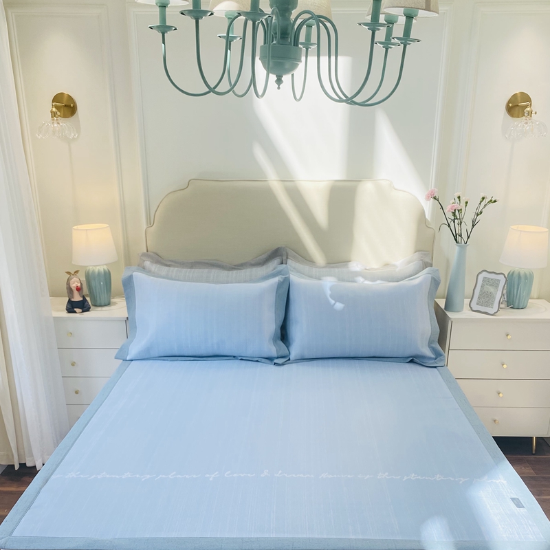本希家居 新款高端可水洗冰丝席提花床席款 奥黛丽-天空蓝