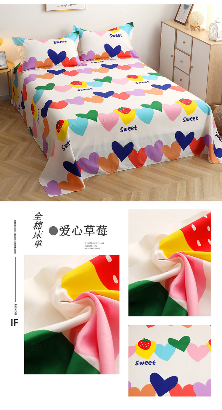 晶缦家纺2021新款秋冬款全棉12868多规格单床单爱心草莓