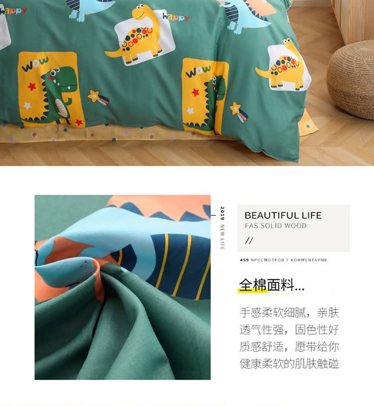 当前位置: 91家纺网 > 商品网购 > 床品套件 > 四件套 > 全棉普通四件套 > 晶缦家纺 2021秋冬款全棉12868多规格四件套 恐龙家族