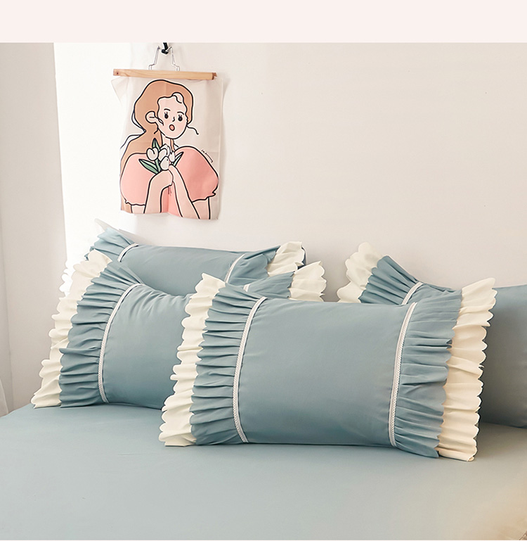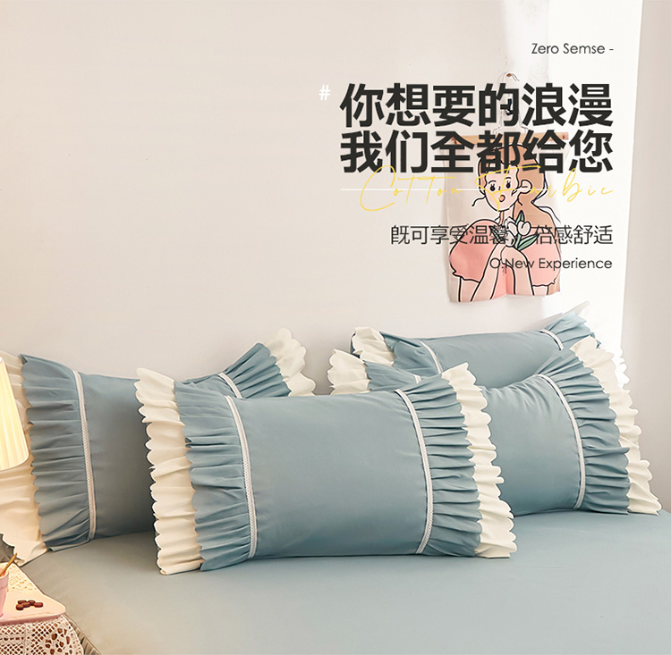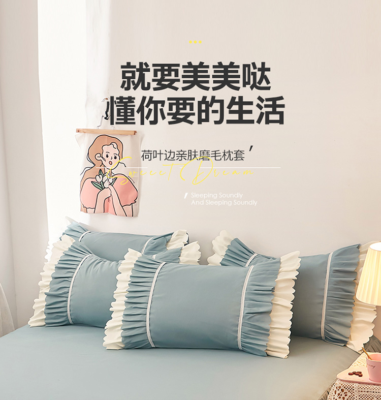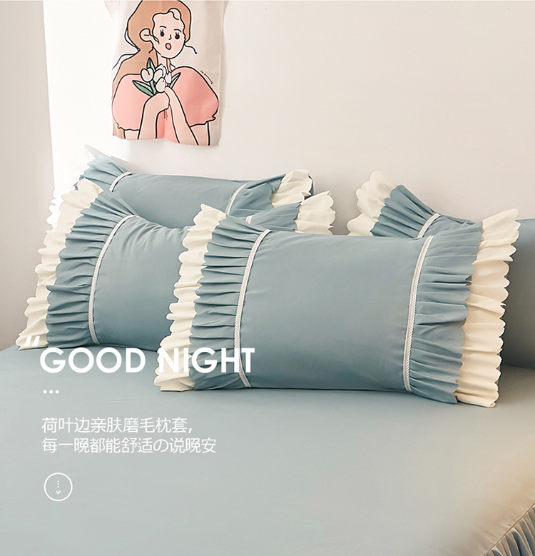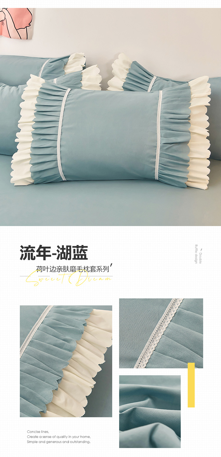商品名称:莉莉安 2025新款荷叶边亲肤磨毛单枕套-流年系列流年-湖蓝