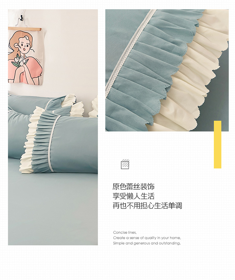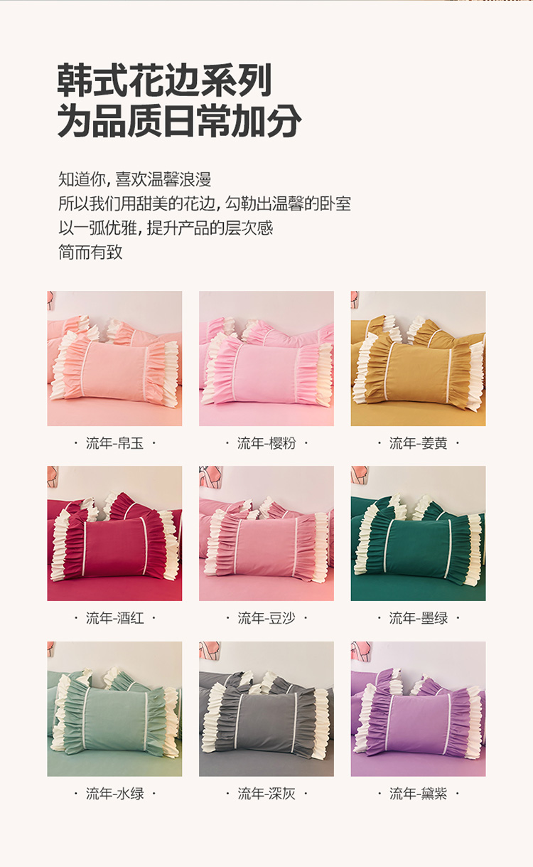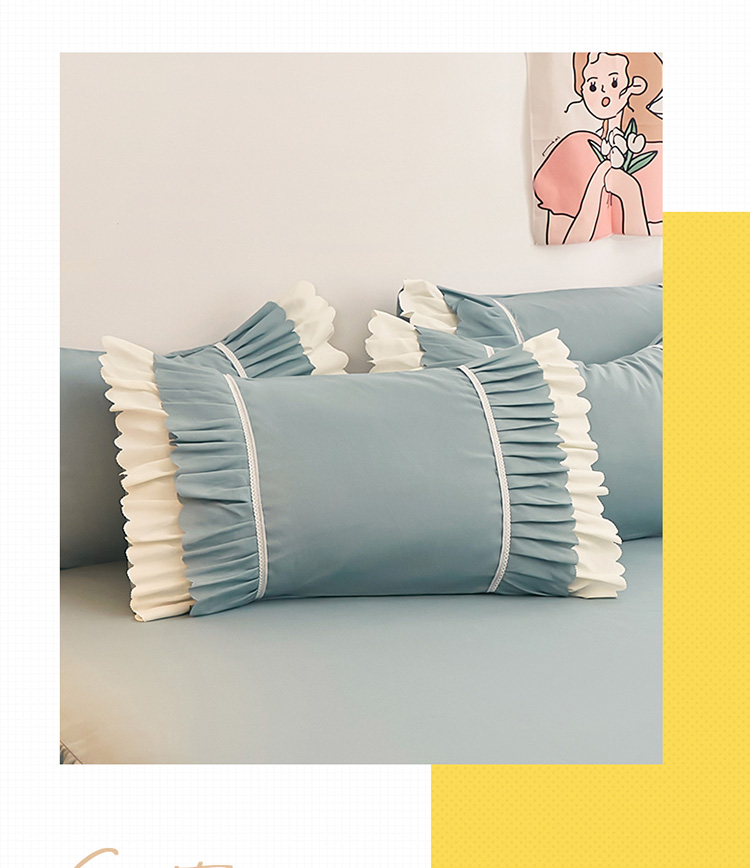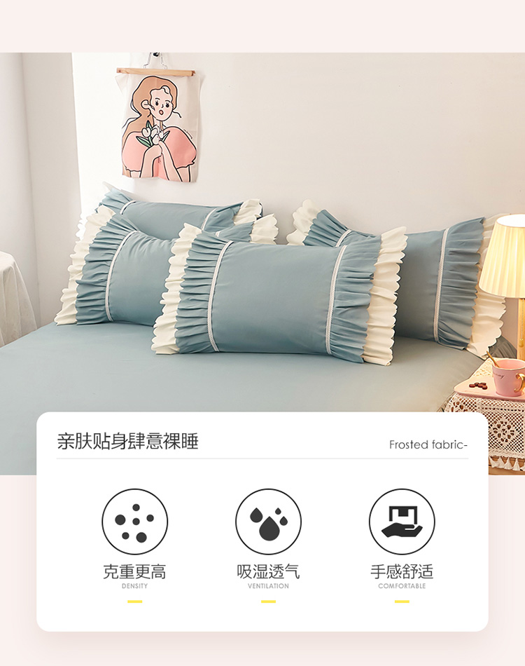 商品名称:莉莉安 2025新款荷叶边亲肤磨毛单枕套-流年系列流年-湖蓝