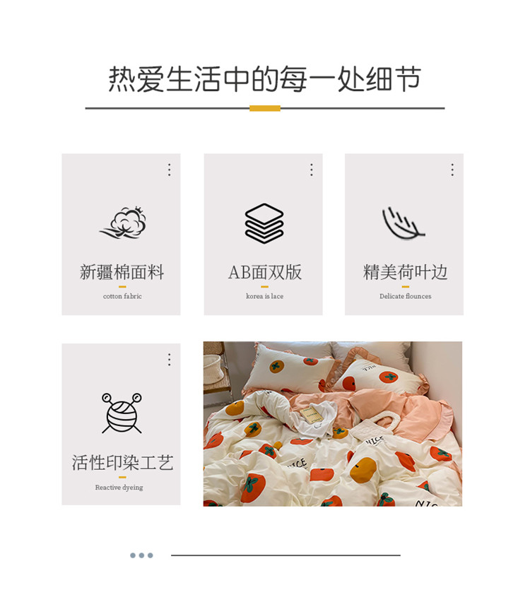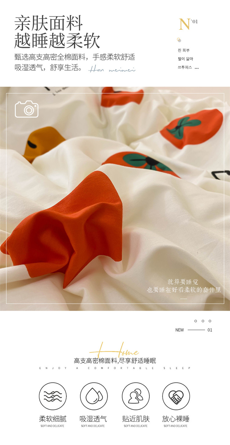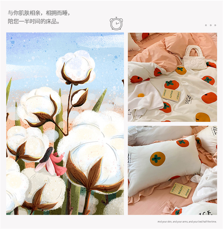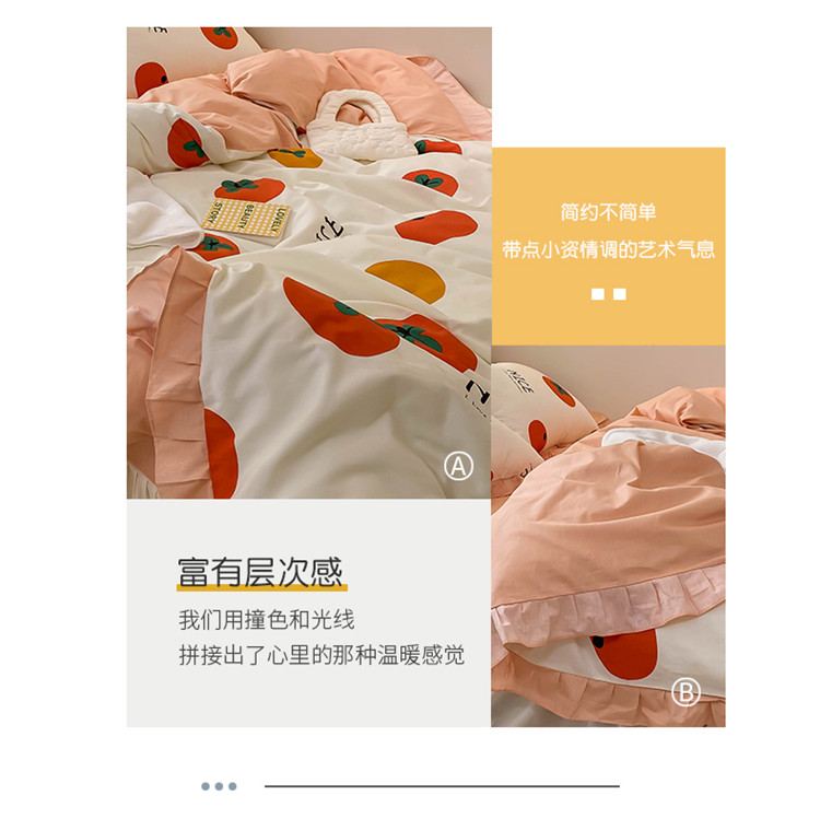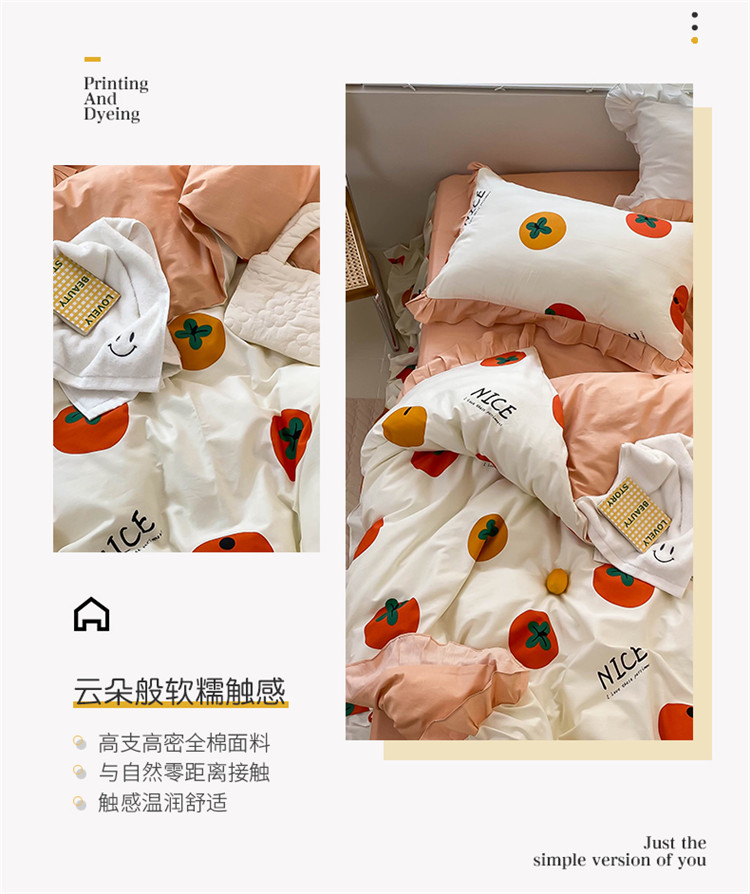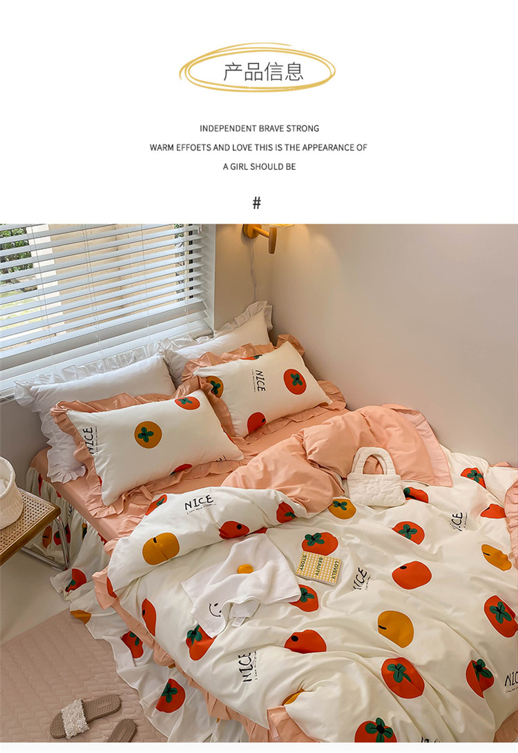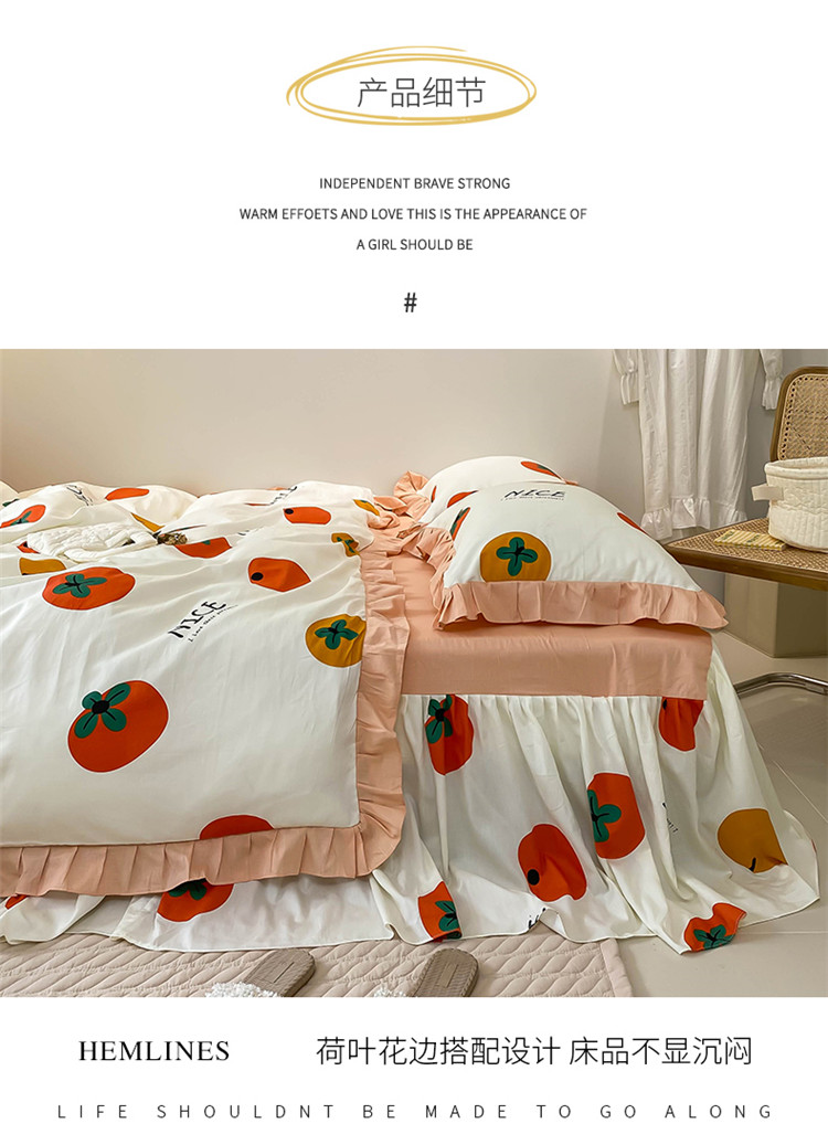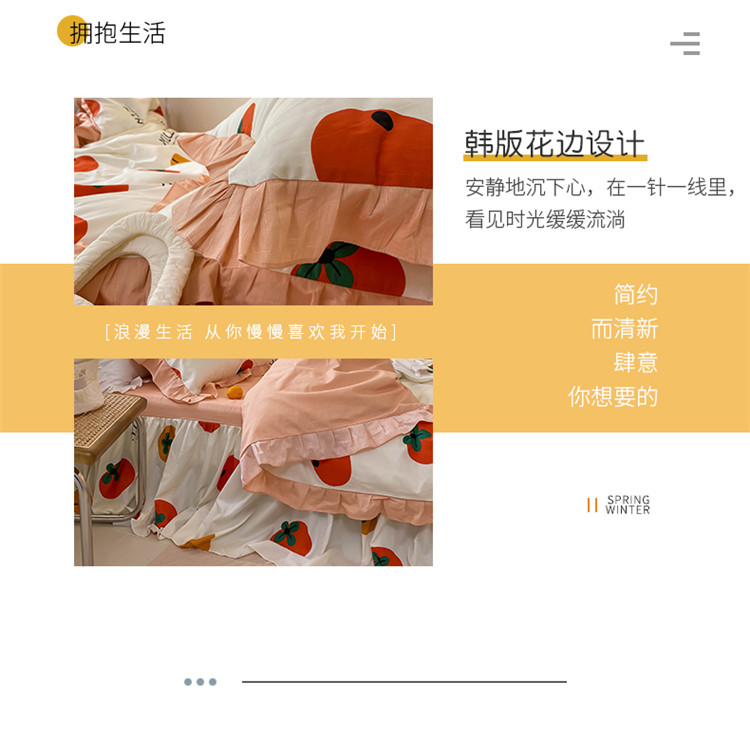 商品名称:绵庭家纺 2024新款全棉喷气床裙款四件套 柿子