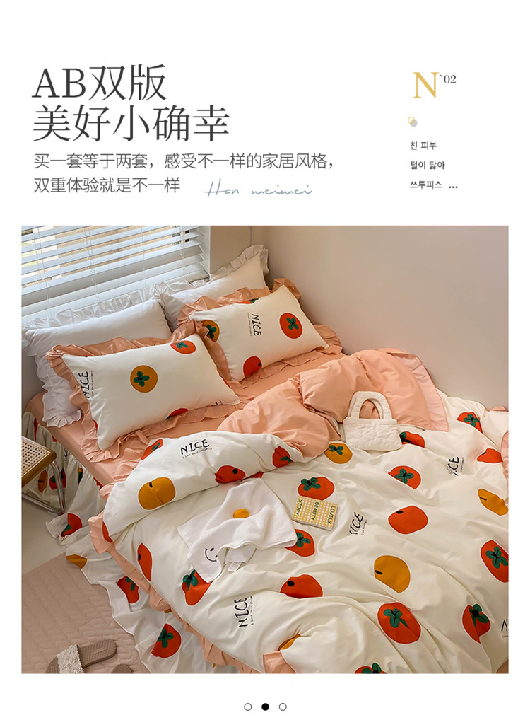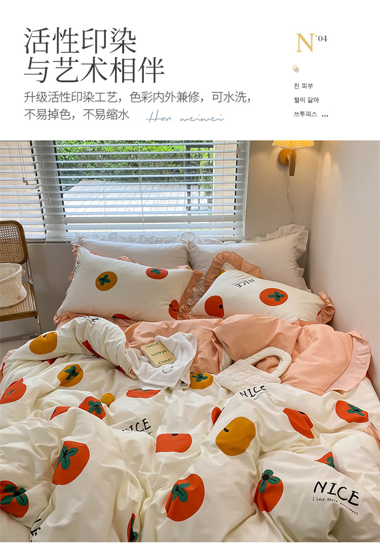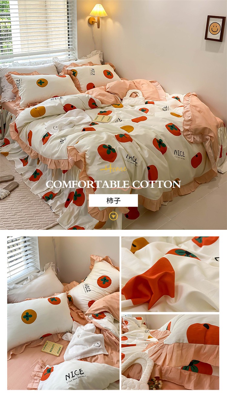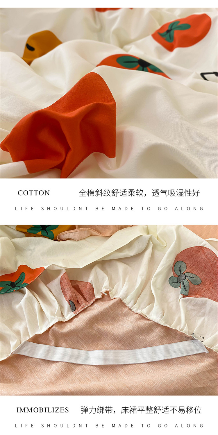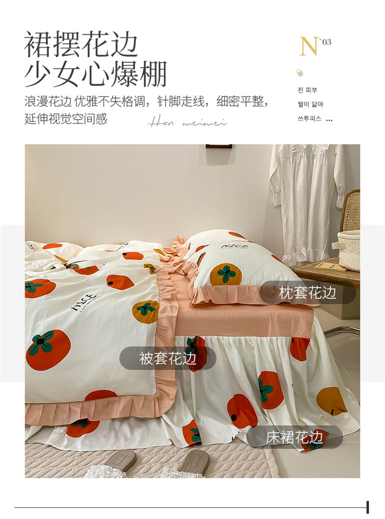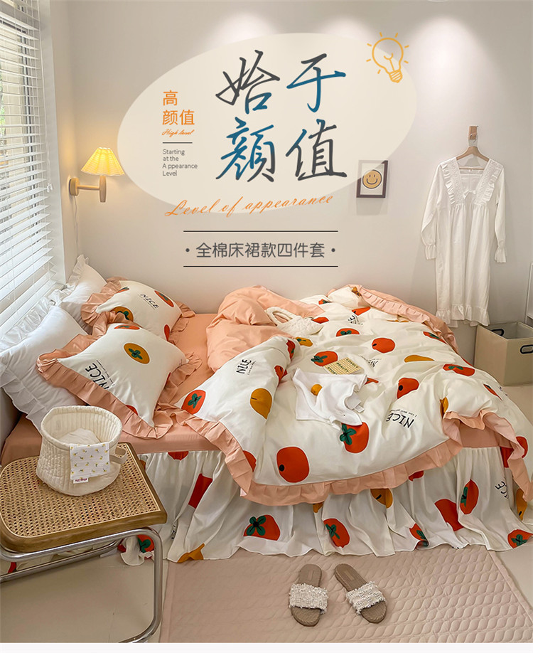绵庭家纺 2024新款全棉喷气床裙款四件套 柿子