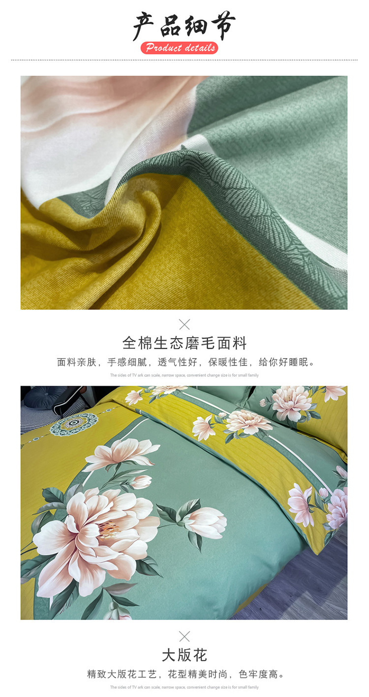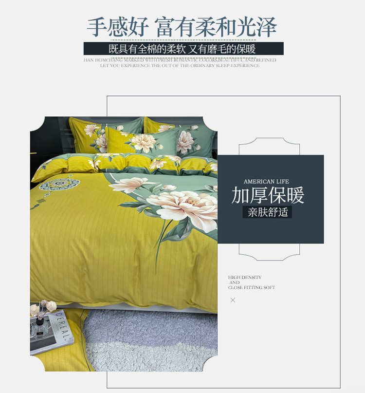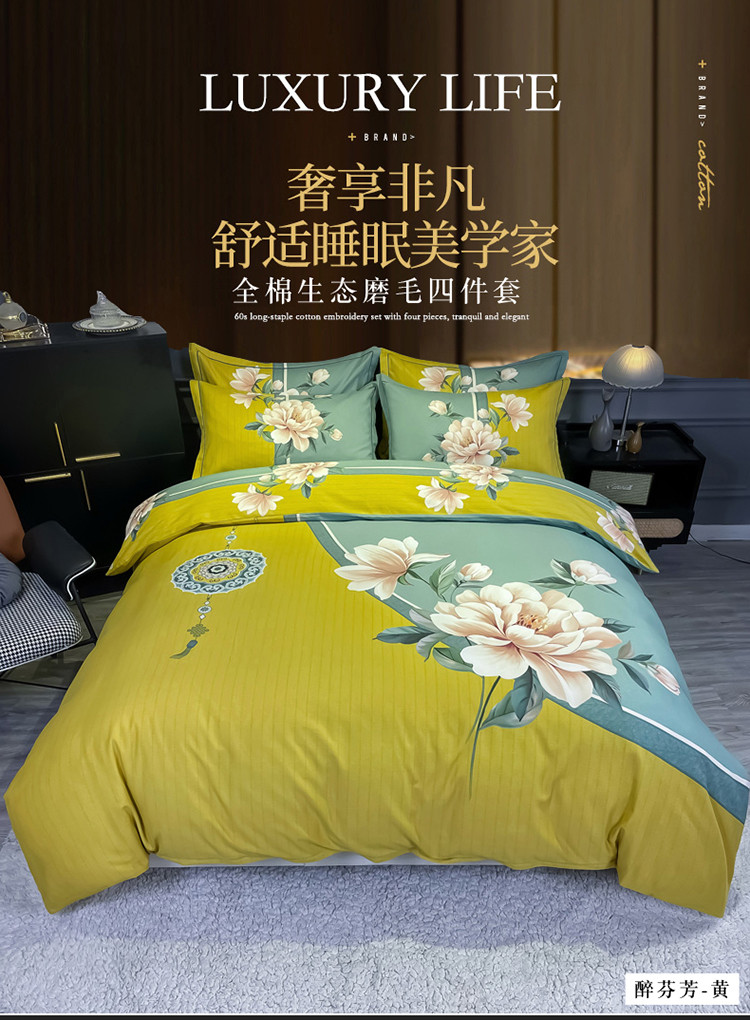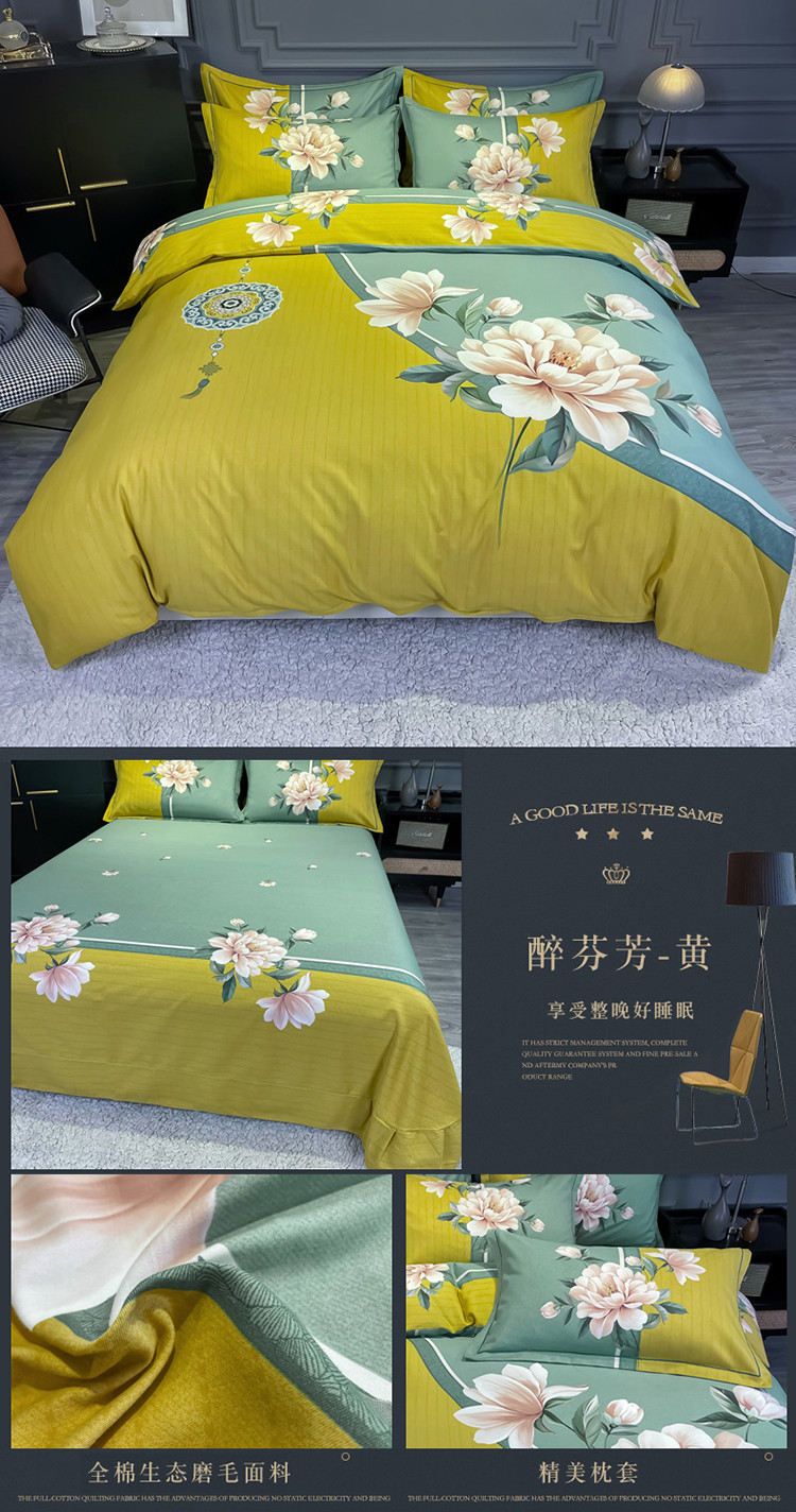 当前位置: 91家纺网 > 商品网购 > 床品套件 > 四件套 > 普通磨毛四件套 > 金爱家 2021新款大版磨毛花卉系列四件套 醉芬芳-黄