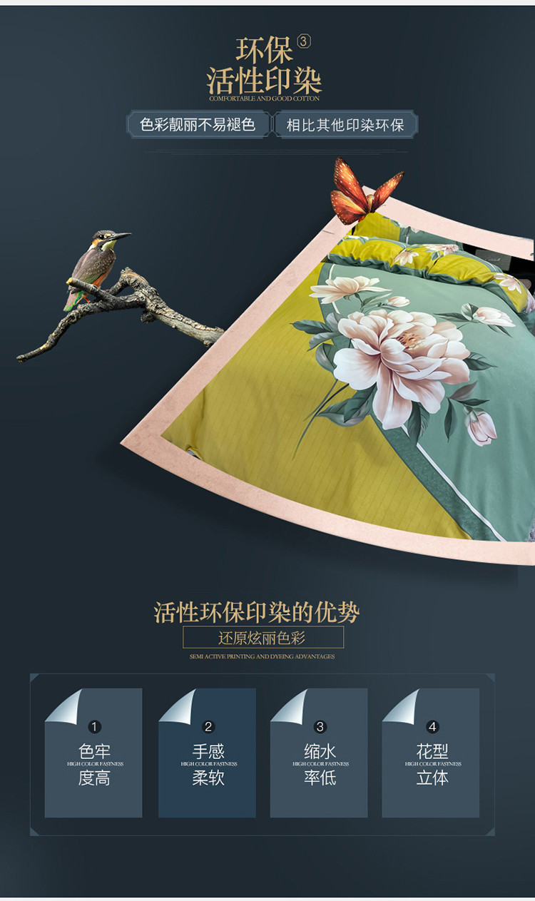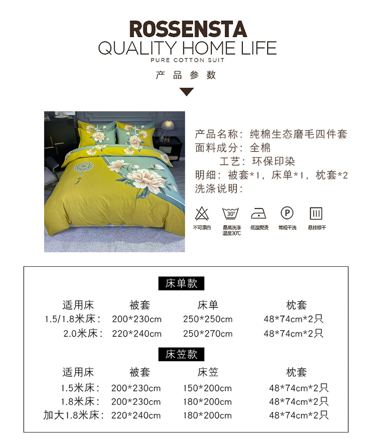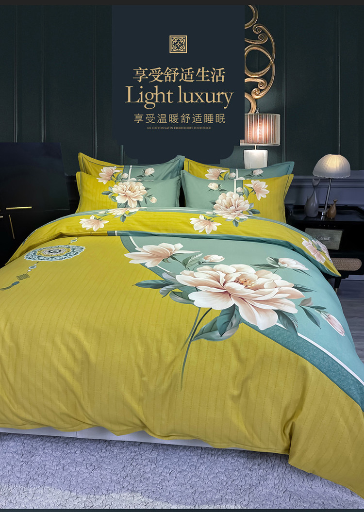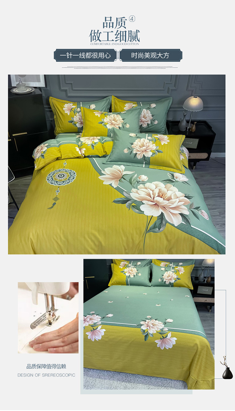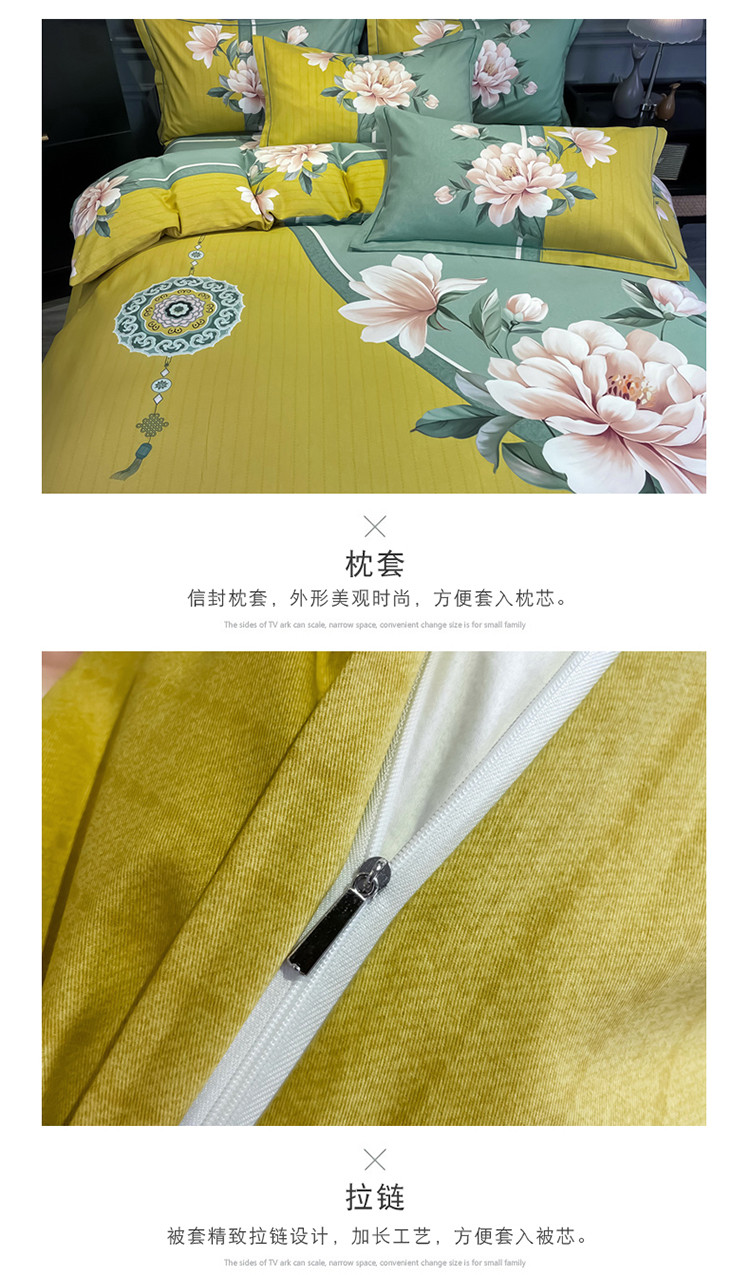 当前位置: 91家纺网 > 商品网购 > 床品套件 > 四件套 > 普通磨毛四件套 > 金爱家 2021新款大版磨毛花卉系列四件套 醉芬芳-黄